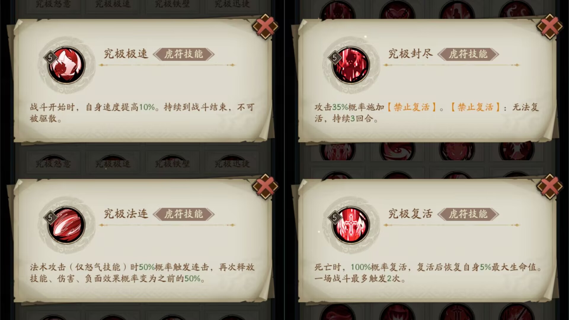 ps:以上的虎符技能仅供参考,大家可以根据自己的实战需求来调整,另外记得将印的技能别和虎符技能重叠了。