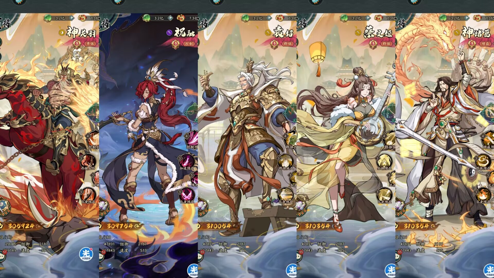 二:【祝融阵容】搭配推荐。①神关+祝融+袁绍+蔡文姬+神诸葛。