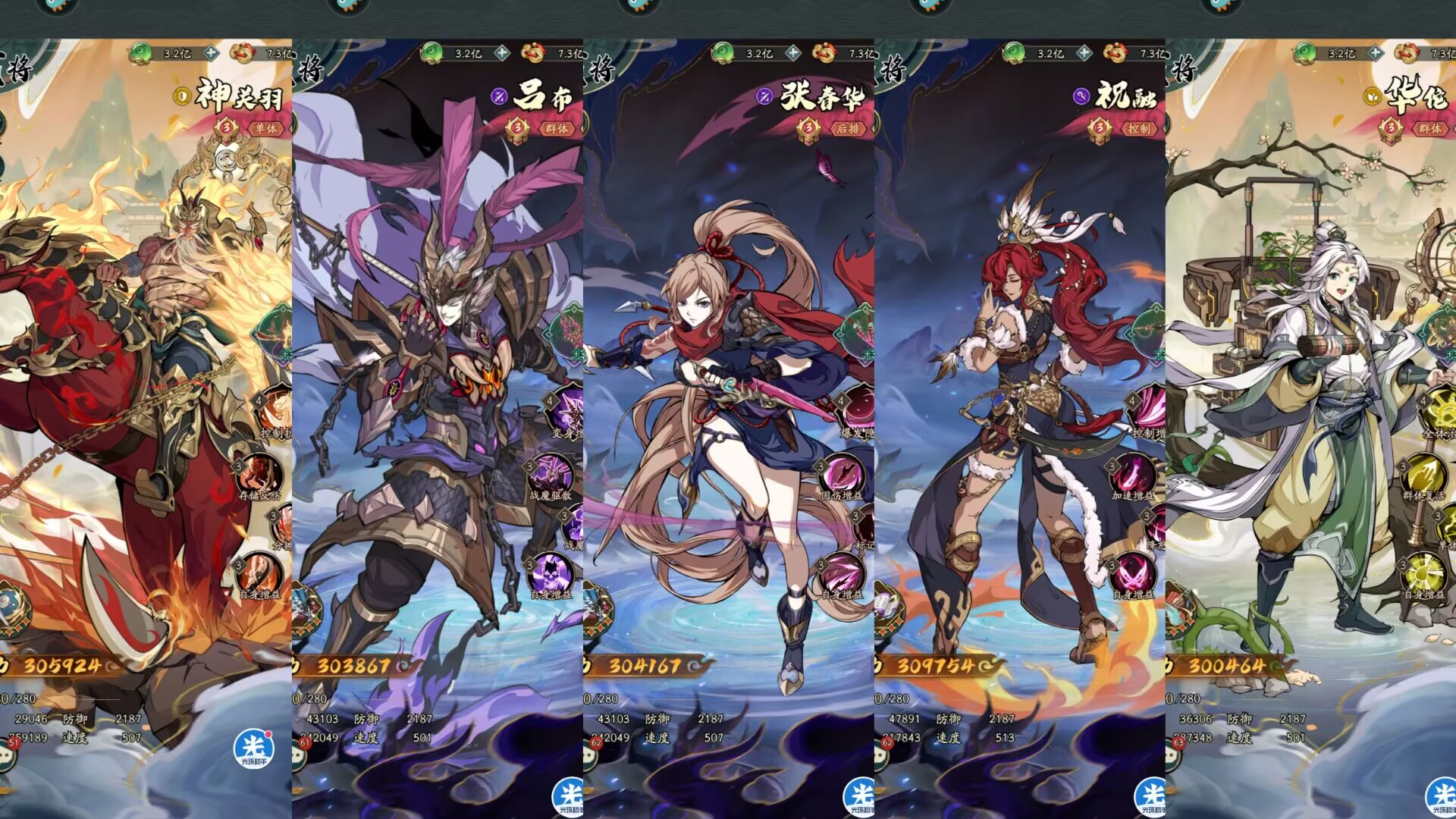 神关+吕布+张春华+祝融+华佗。