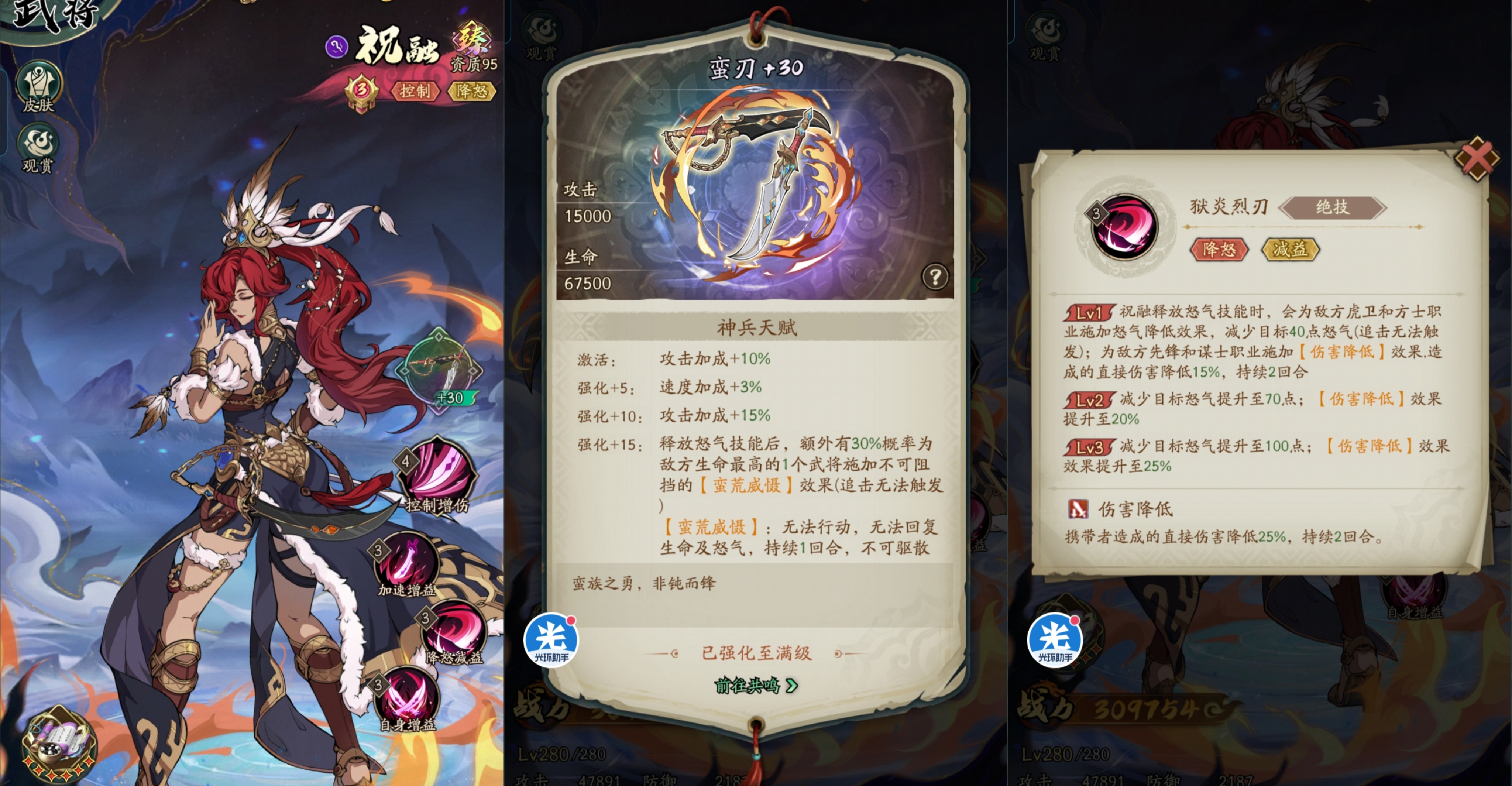 祝融对速度的要求比较高,先手释放技能很重要给敌人挂负面和控制很重要。