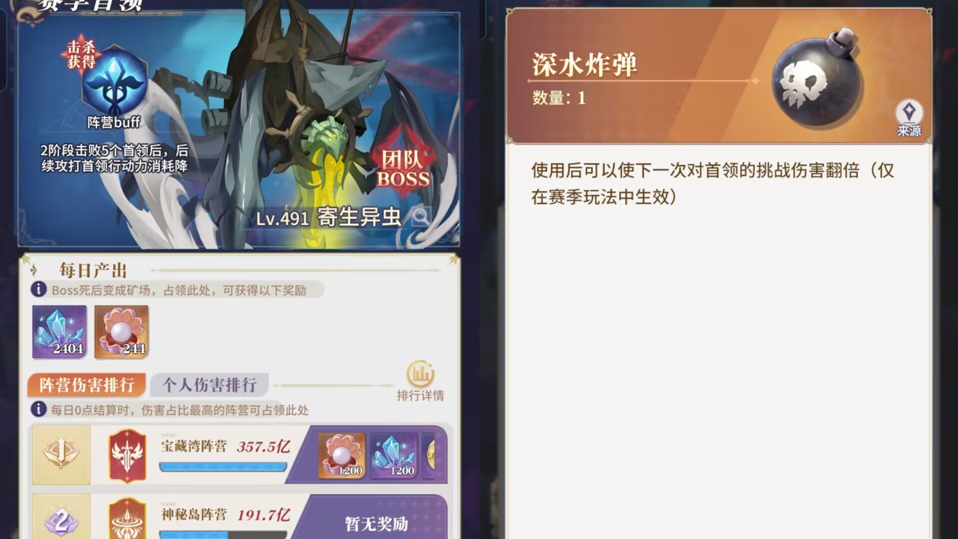 1:击杀这个首领可以获得:二阶段攻打所有首领受到的伤害提升100%(所以第一天是抢的最理激烈的一天)。