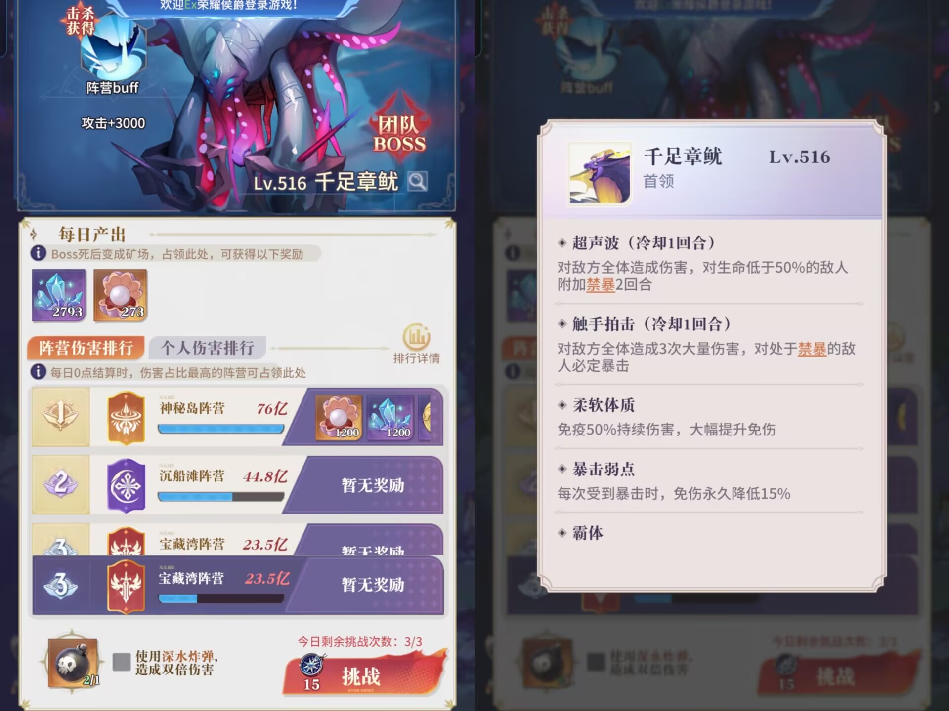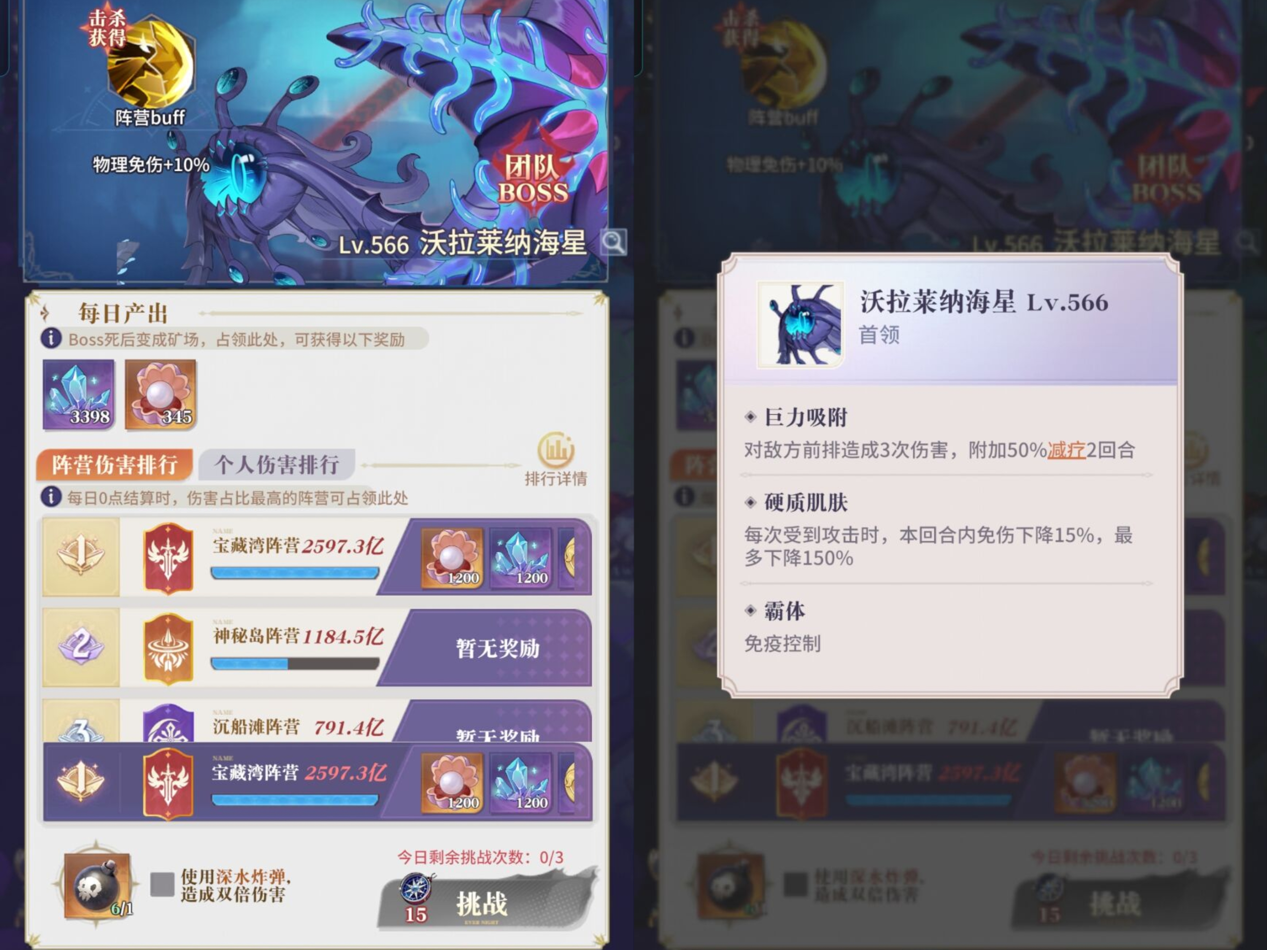 ②提前了解明天的首领特性,这样可以来调整阵容,因为我们阵容换角色需要24小时。