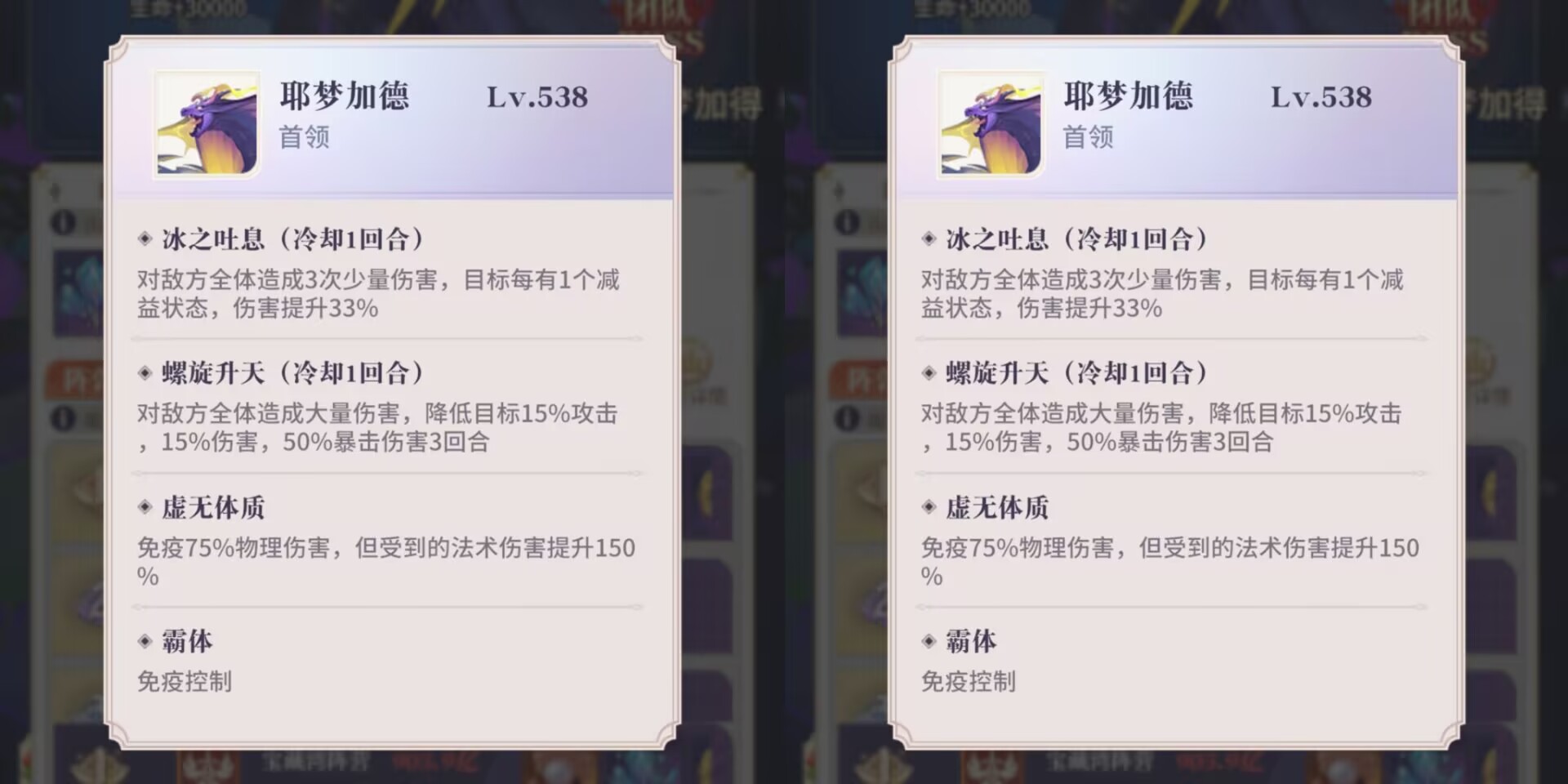 冰之吐息:对我方造成3次少量的伤害,我方有一个建议状态伤害就会提升33%(所以驱散圣龙和净化角色很重要,可以极大降低我方被攻击的伤害)比如:露。