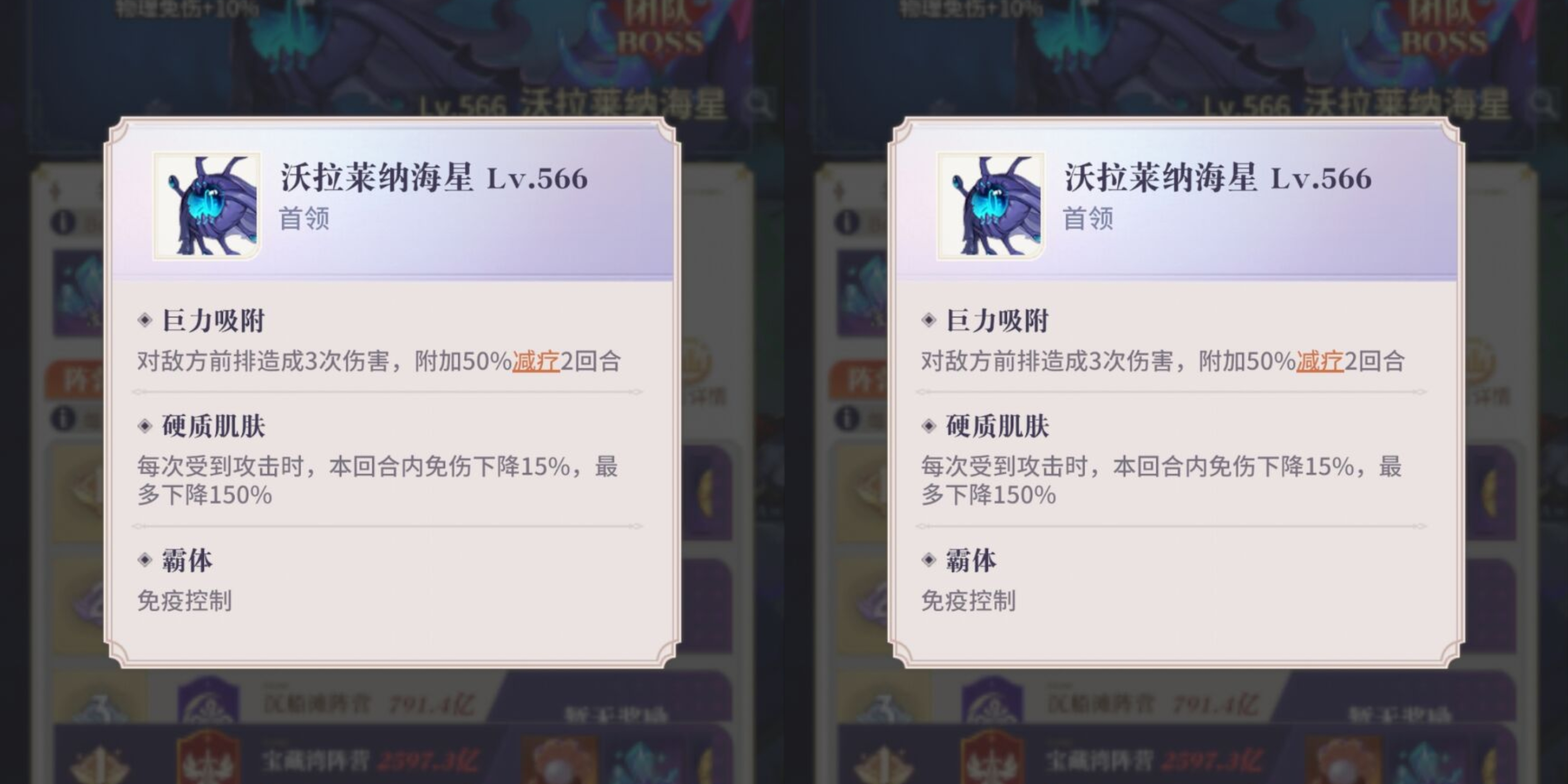 五:【沃拉莱纳海星】技能解析+阵容推荐。①击杀海星后可以获得物理免疫提升10%的buff这个buff提升队伍二阶段来说作用不是很大。