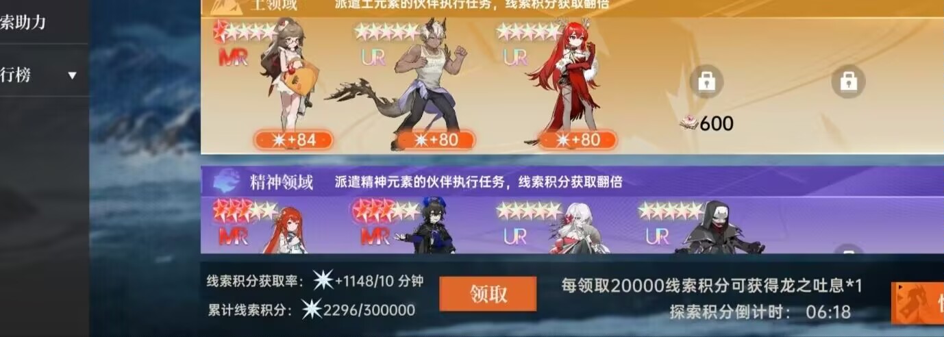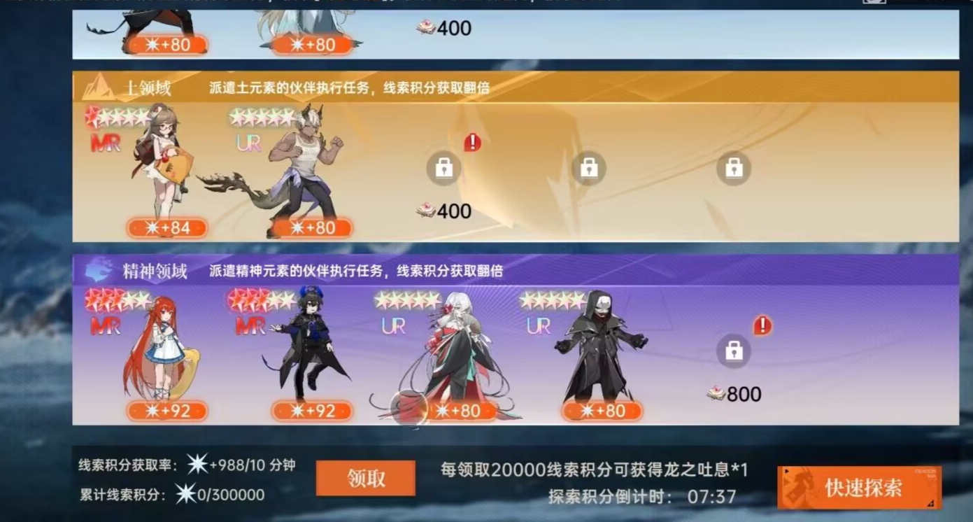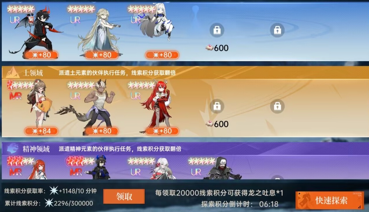 不要搞错了!如果把土元素的角色上到其他领域,获得的线索积分会大幅度降低,这是第二个核心点。