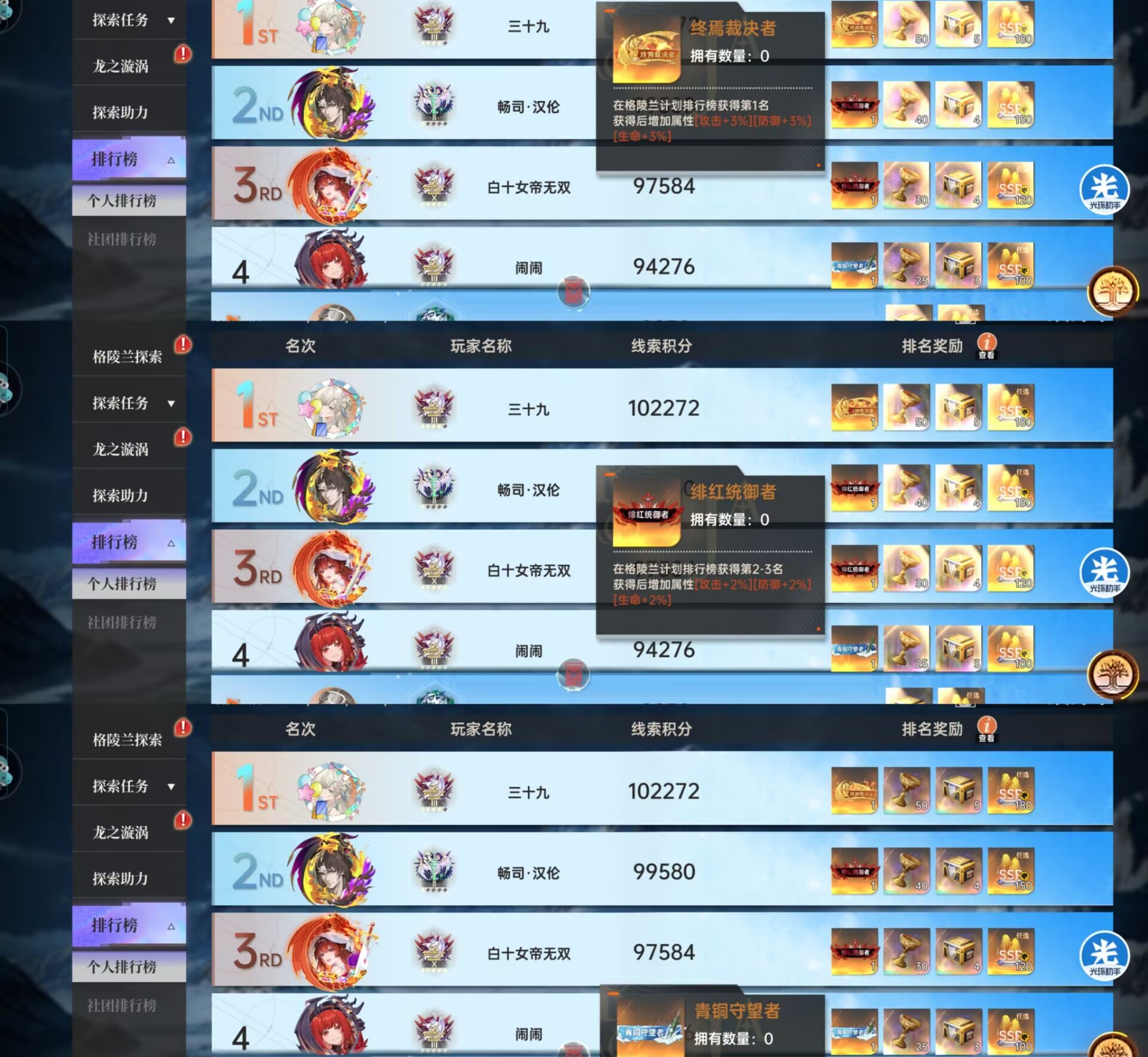 6【排行榜】奖励解析。最后核心说下排行奖励!分为个人排行奖励和社团排行奖励。