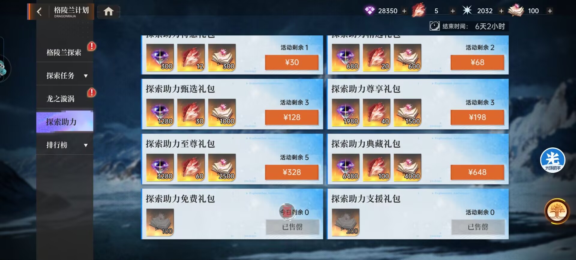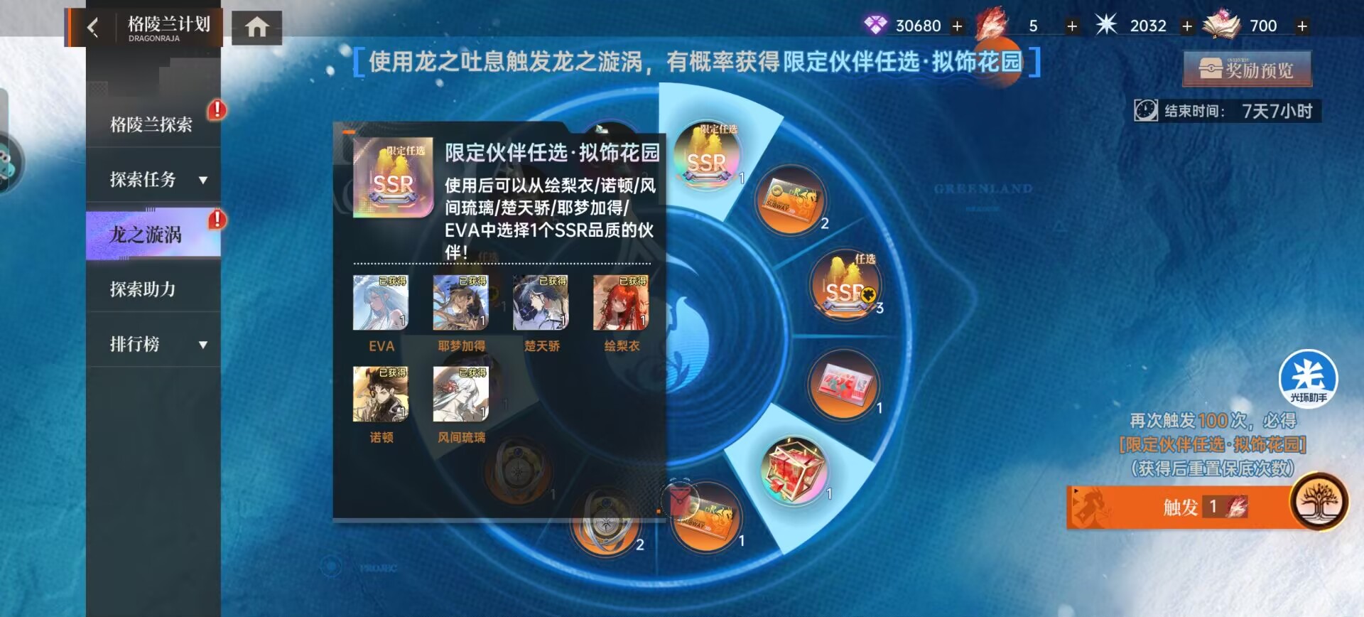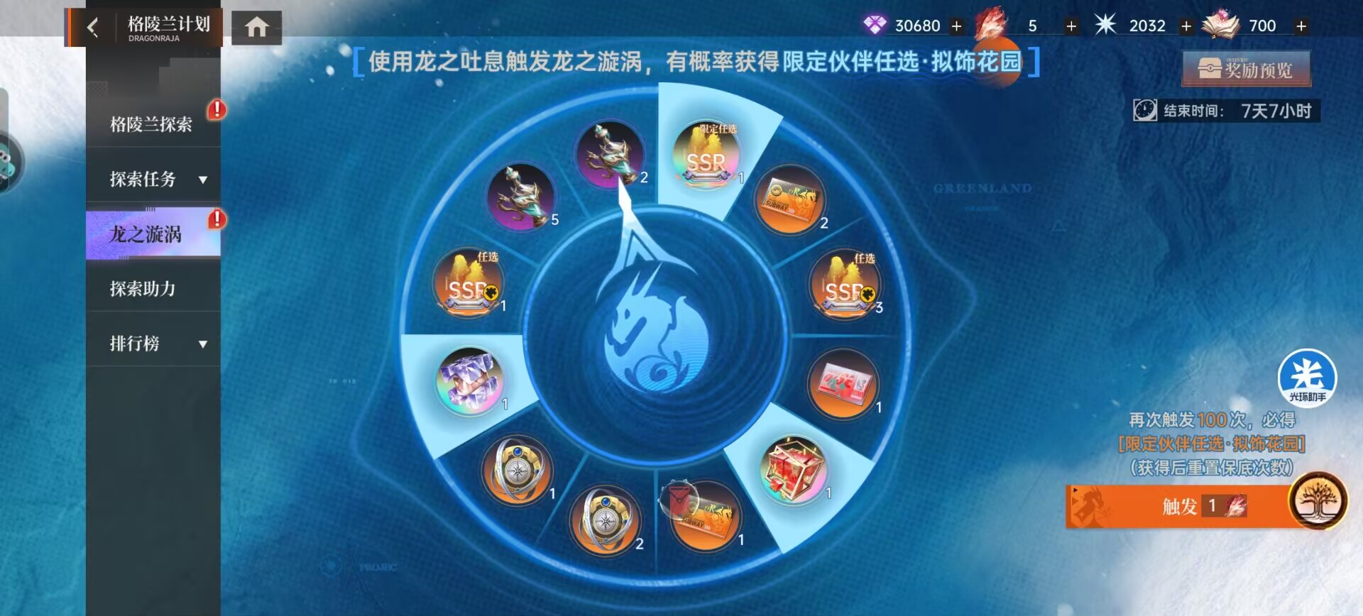 ①格林兰探索 ②探索任务③龙之漩涡 ④探索助力 ⑤排行榜。