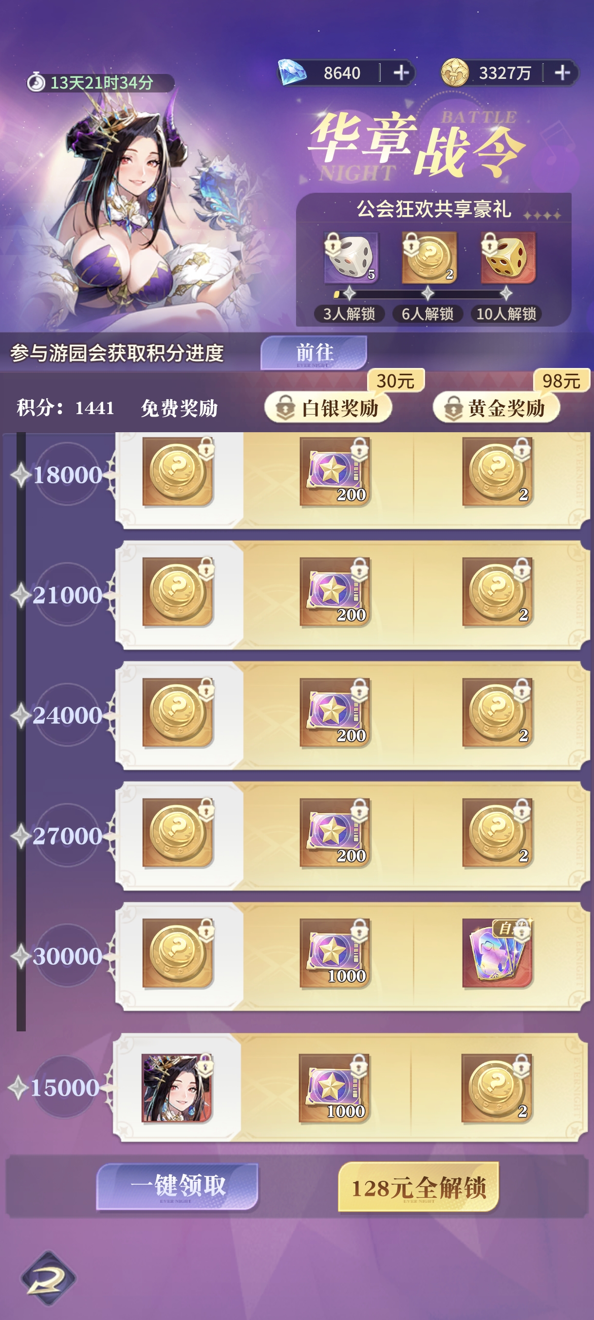也可氪金购买战令的白银和黄金奖励,白银奖励共计6400游园券,黄金奖励为核心自选箱+30个扭蛋币。