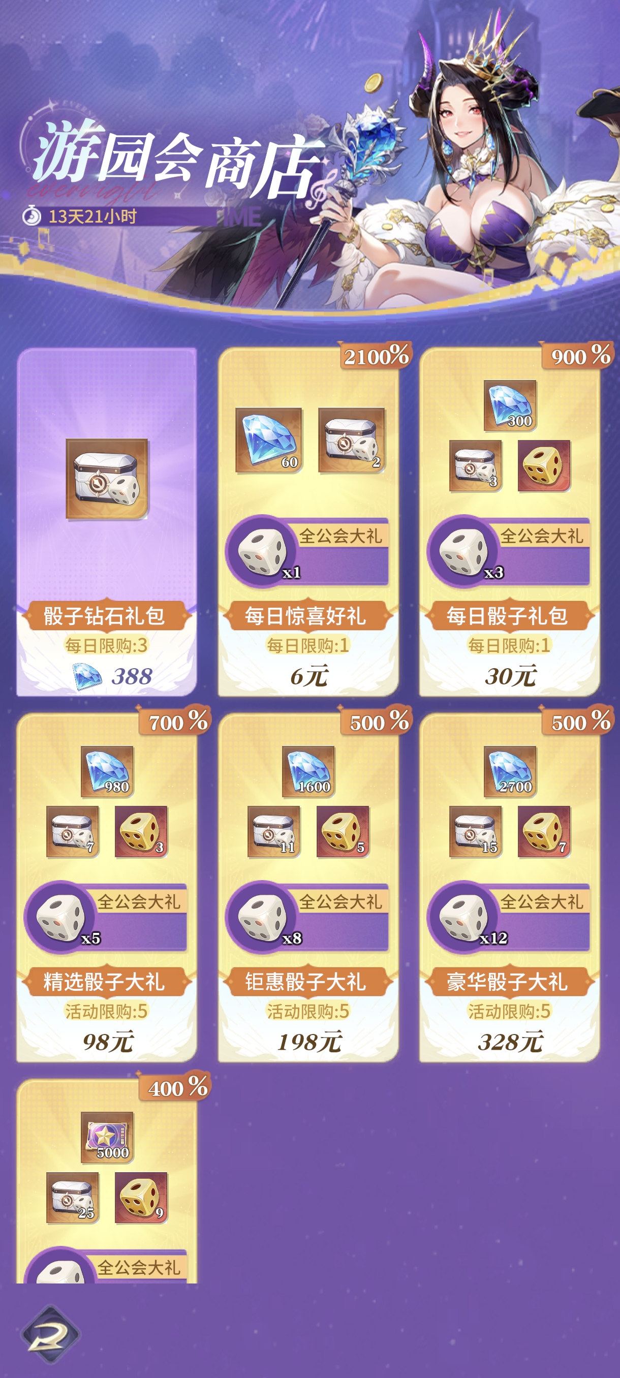 每天可花费钻石购买3次普通骰子,也可以购买氪金礼包获取更多骰子。