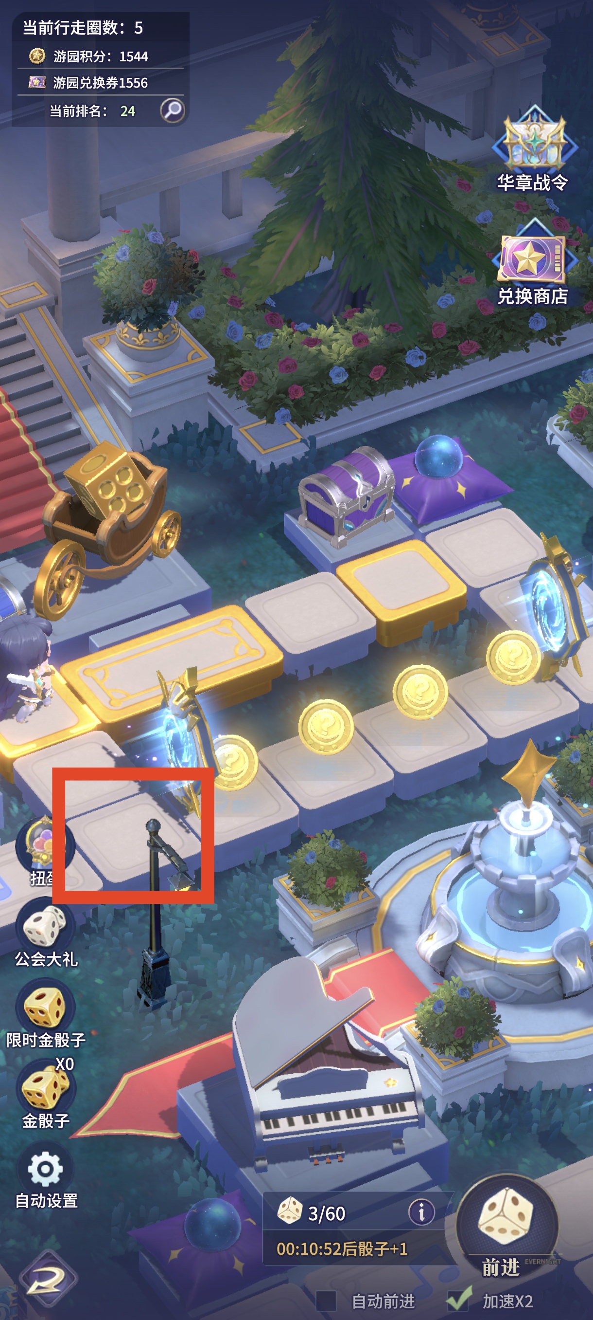 整张游园会地图有个最重要的格子,就是魔镜穿越,进入后后续4格均为扭蛋抽奖币,扭蛋币正常跑图要跑满一整圈才能获取1个,如果身上拥有金骰子,可以通过进入魔镜格后连续获得4个扭蛋币!