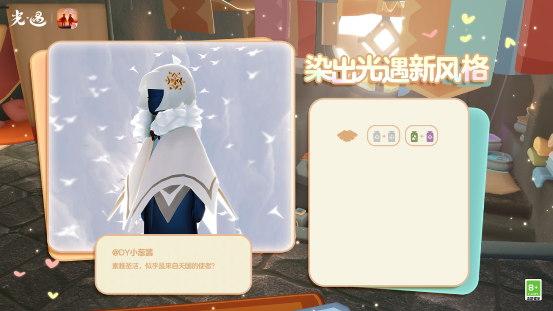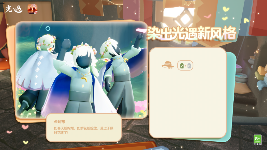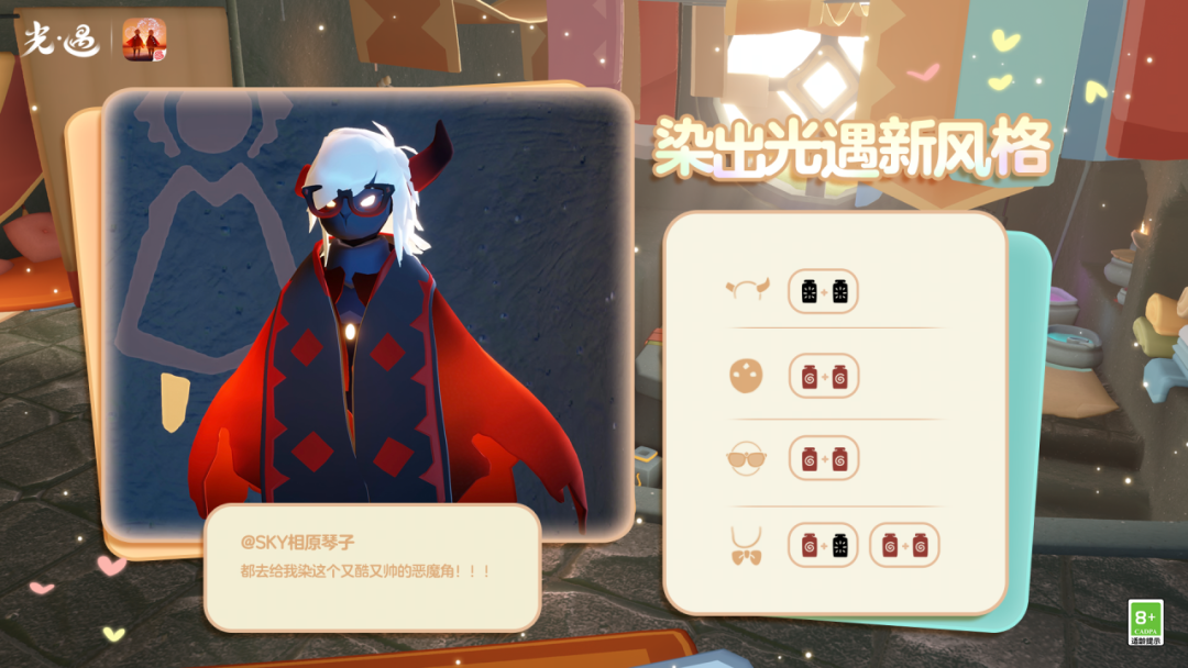 当更多物品,遇见属于色彩的魔法是泽哦发布于 03-29关注为星棱斗篷染上多种惊艳配色在天空王国吸引无数赞赏的目光缤纷饰品作为穿搭的会心一击“光遇最时尚”的称号非光之子莫属!✨️随着更多物品开放染色功能光之子们也解锁了穿搭的无限可能一起看看他们的作品吧~