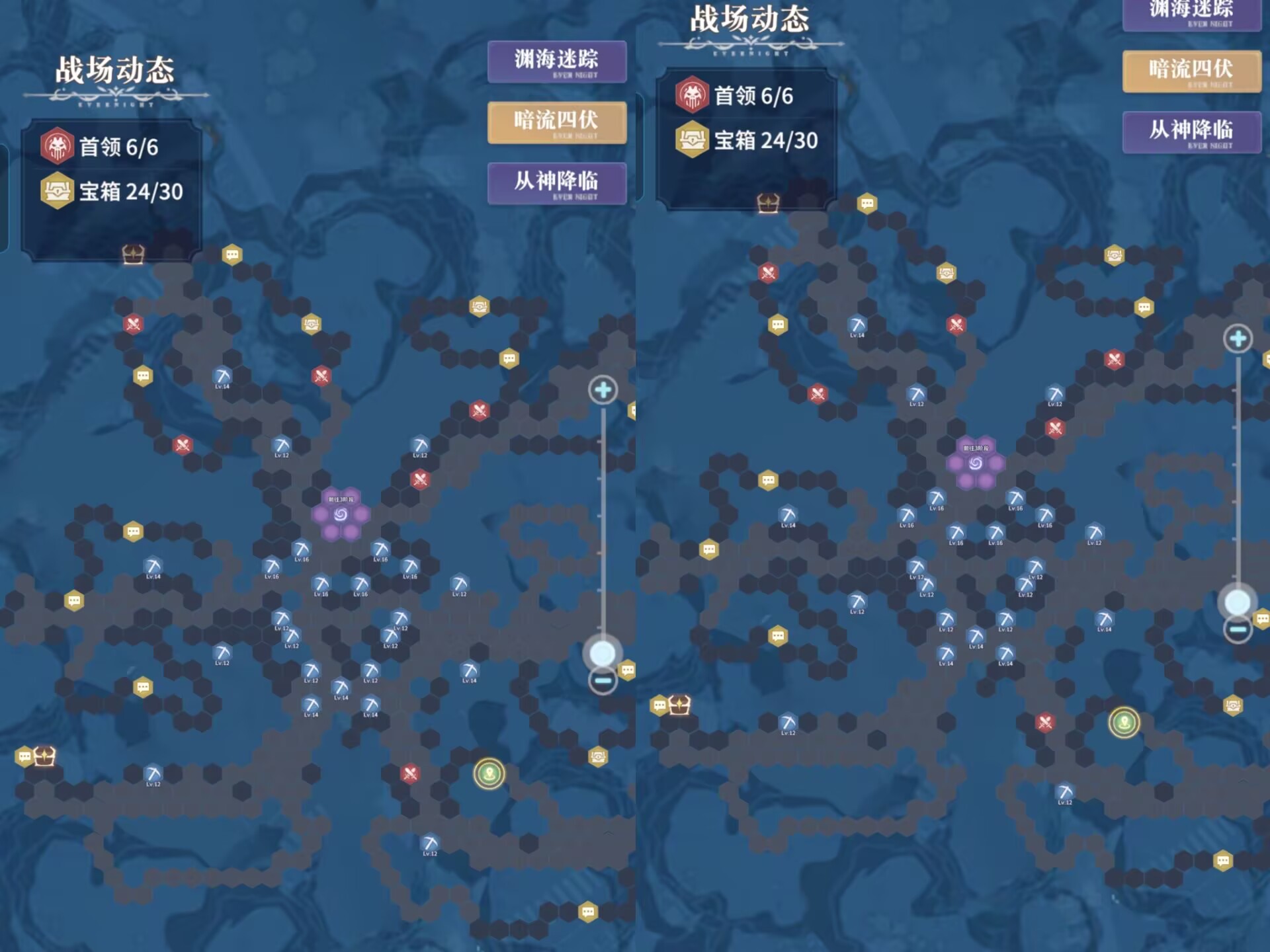 2.只可以占两个矿,占了一矿的角色就不能再去打二矿了,所以占的时候记得合理分配,量力而行,不要占了一个矿第二个矿战力差太多占不住,战力偏低的可以占位置偏一点的矿,不然容易被抢
