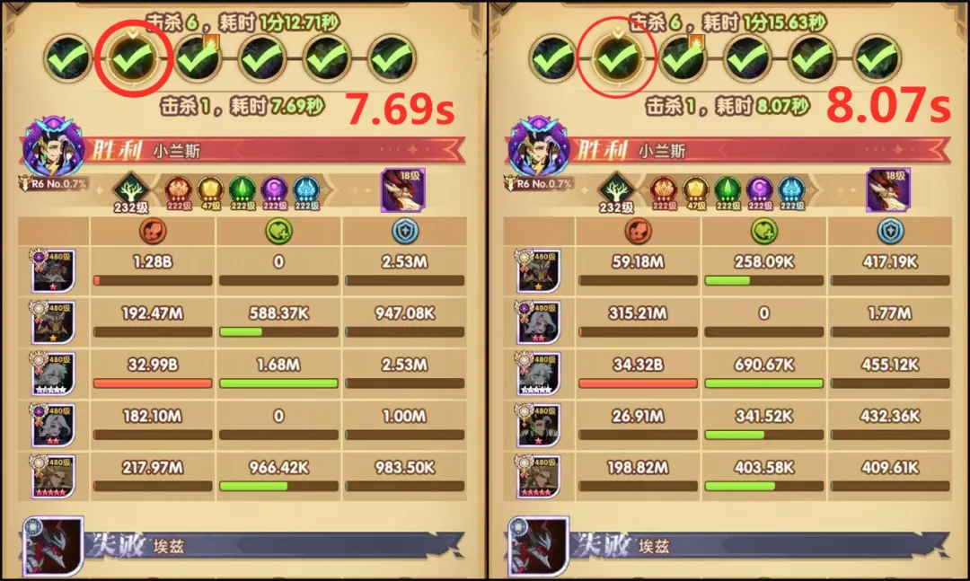 1队手法:开局自动,棋神开两次大招后取消自动,然后拼命点骨王大招(大概在1:23),结算1:18。