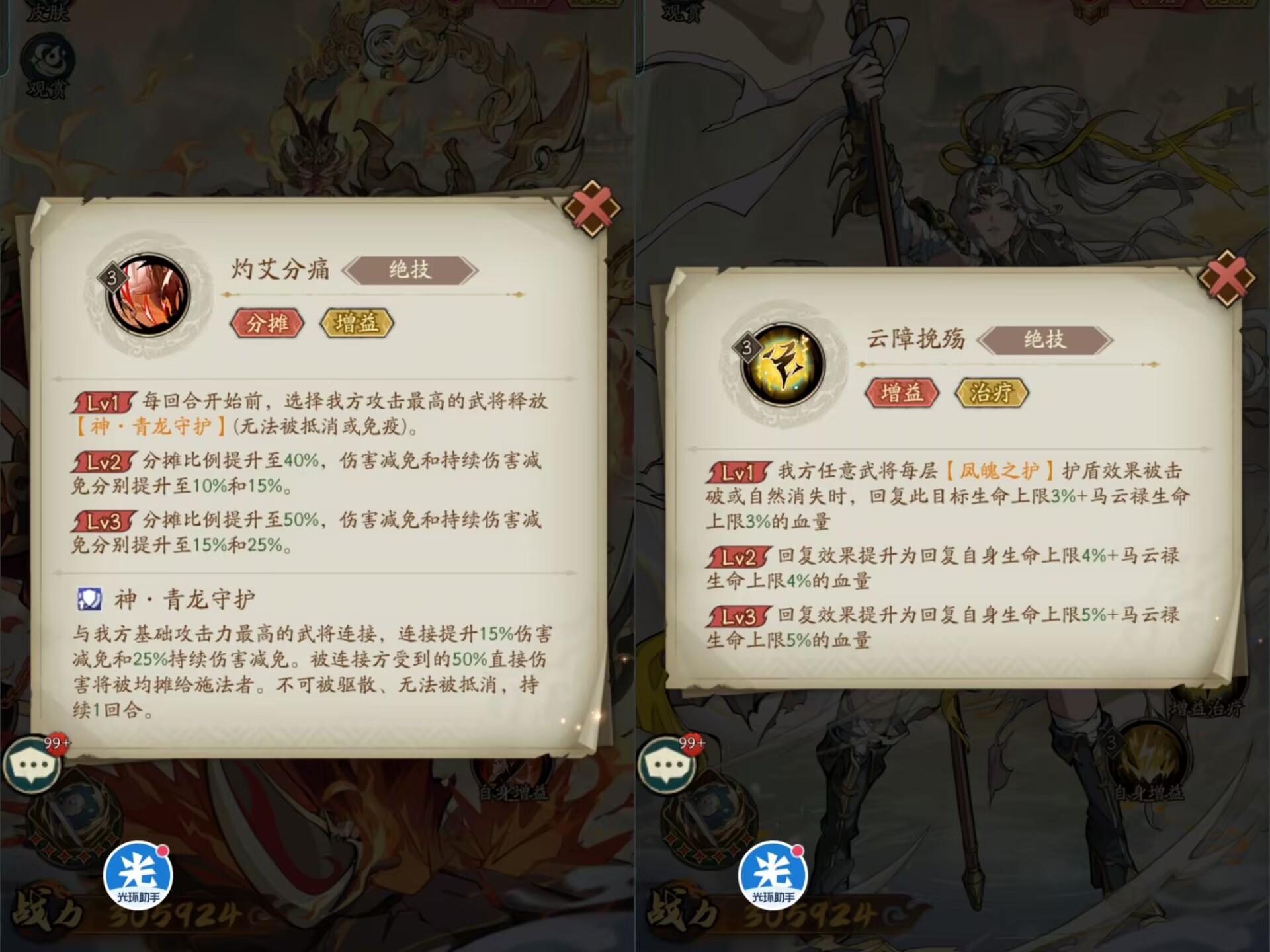 可以保护残血队友免疫死亡,直接锁1点血!同时回复马云禄50%的生命。