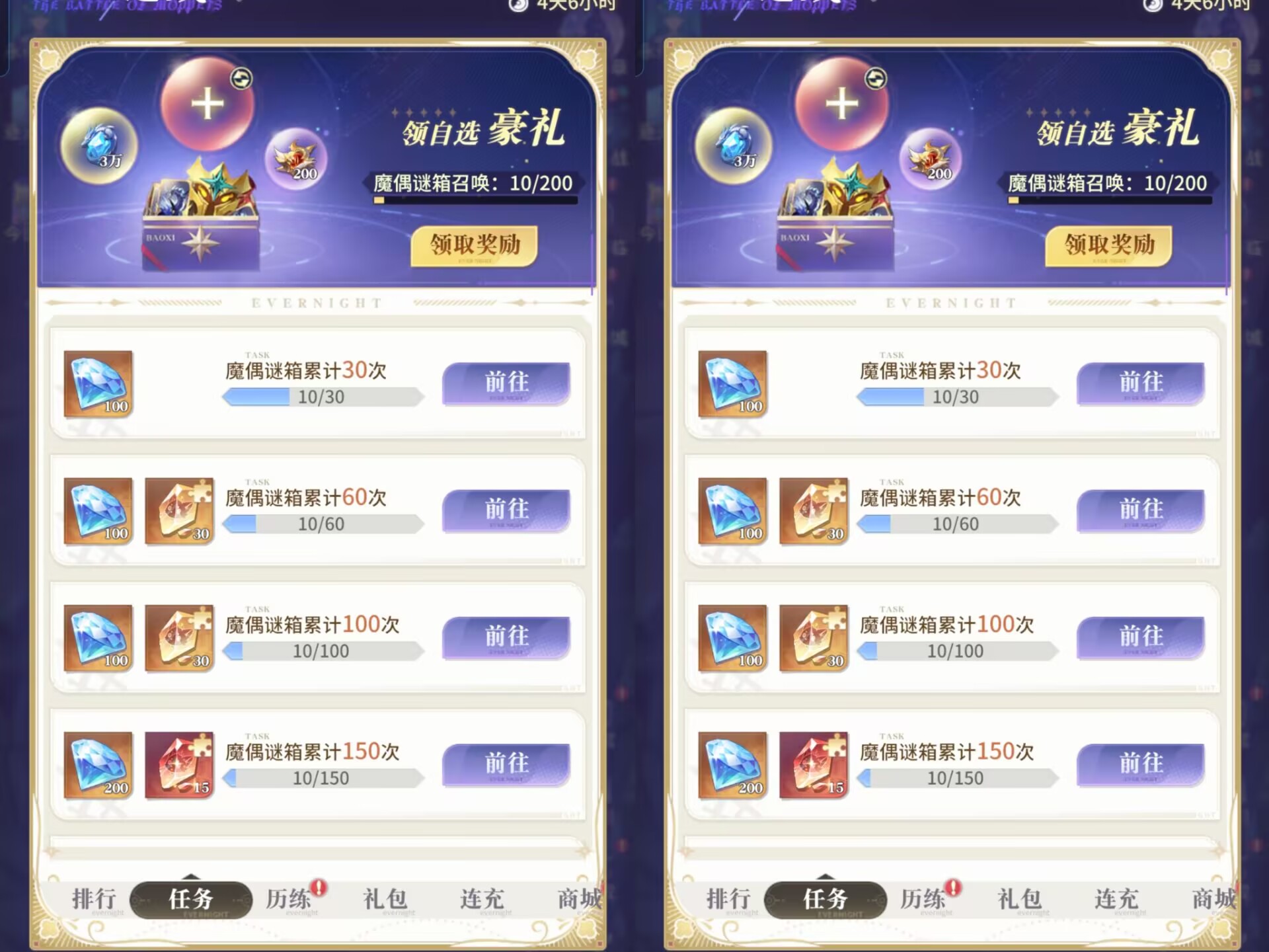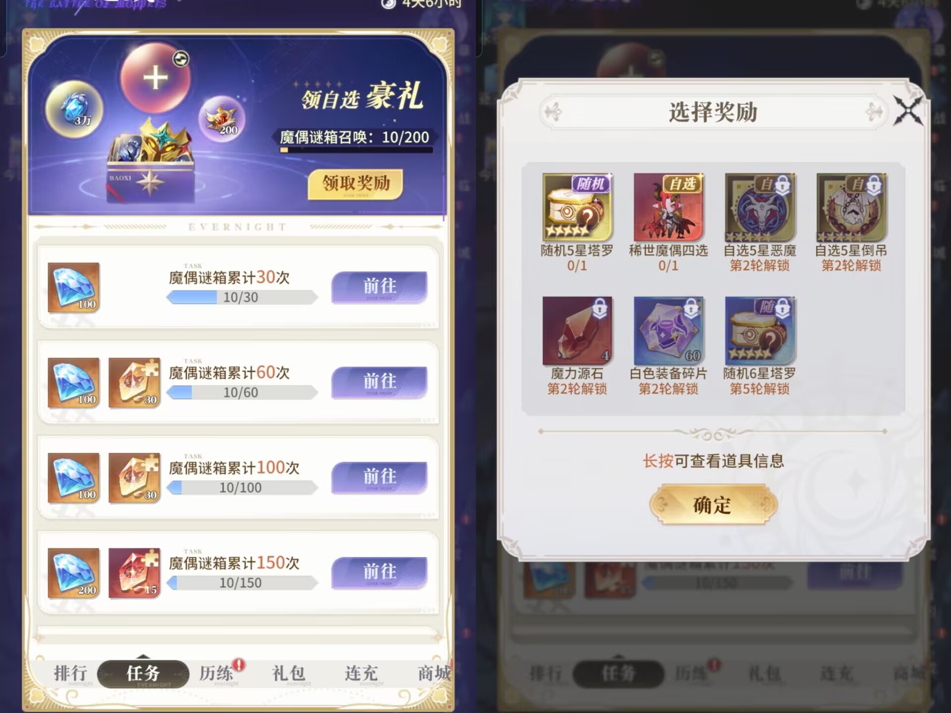 三:【魔偶之战】任务玩法解析。通过抽取魔偶箱子来完成这个任务。