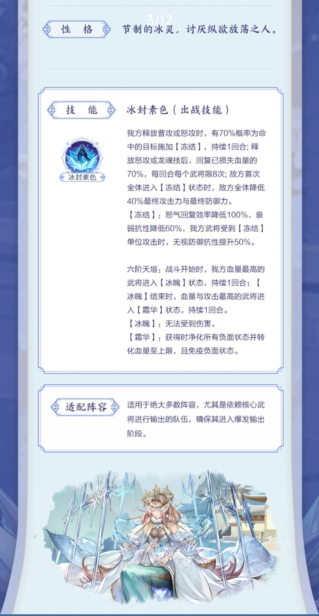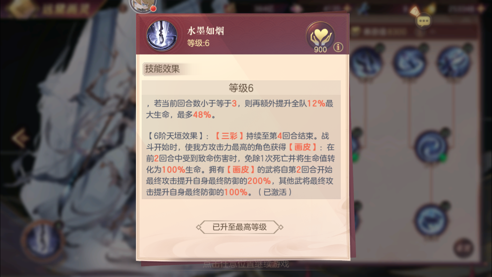 ②6阶效果分析,一血保命一回合,一回合以后,一攻和一血武将净化DEBUFF和转化至血量上限以及免疫负面状态。简单来说就是硬保一个武将一回合不死,以及使得2回合开始1攻和1血武将,可以爆发出更强的战力。