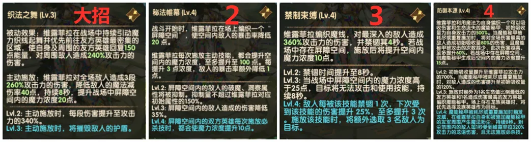 ◇简述:龙族的辅助英雄。在战场中编织屏障空间为队友或敌人施加增减益效果,并且通过主动释放技能提升空间内的魔力浓度以强化各类效果。