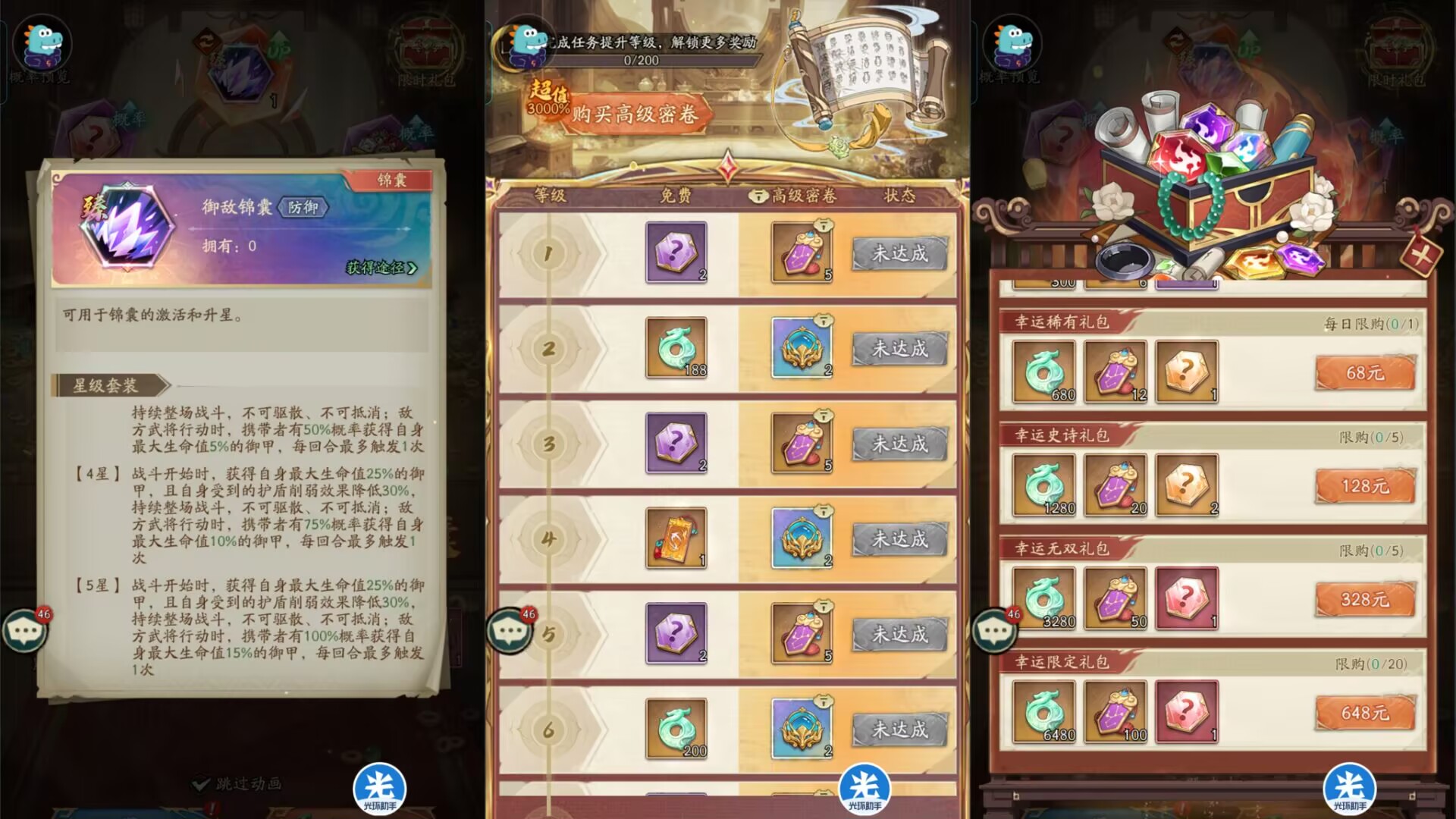 新锦囊从0–5星需要6700元!这个价格一般玩家是氪不起的!满星是给氪佬准备的!