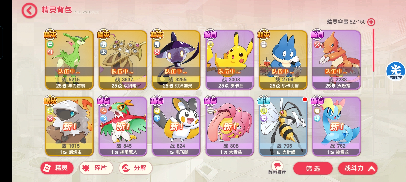 有剑盾和草羊可以了,前两个星期升级很快,你看着拿三选一的精灵就行,可以凑个三剑士加个美梦神或者花夫人,再加一个主c神兽。