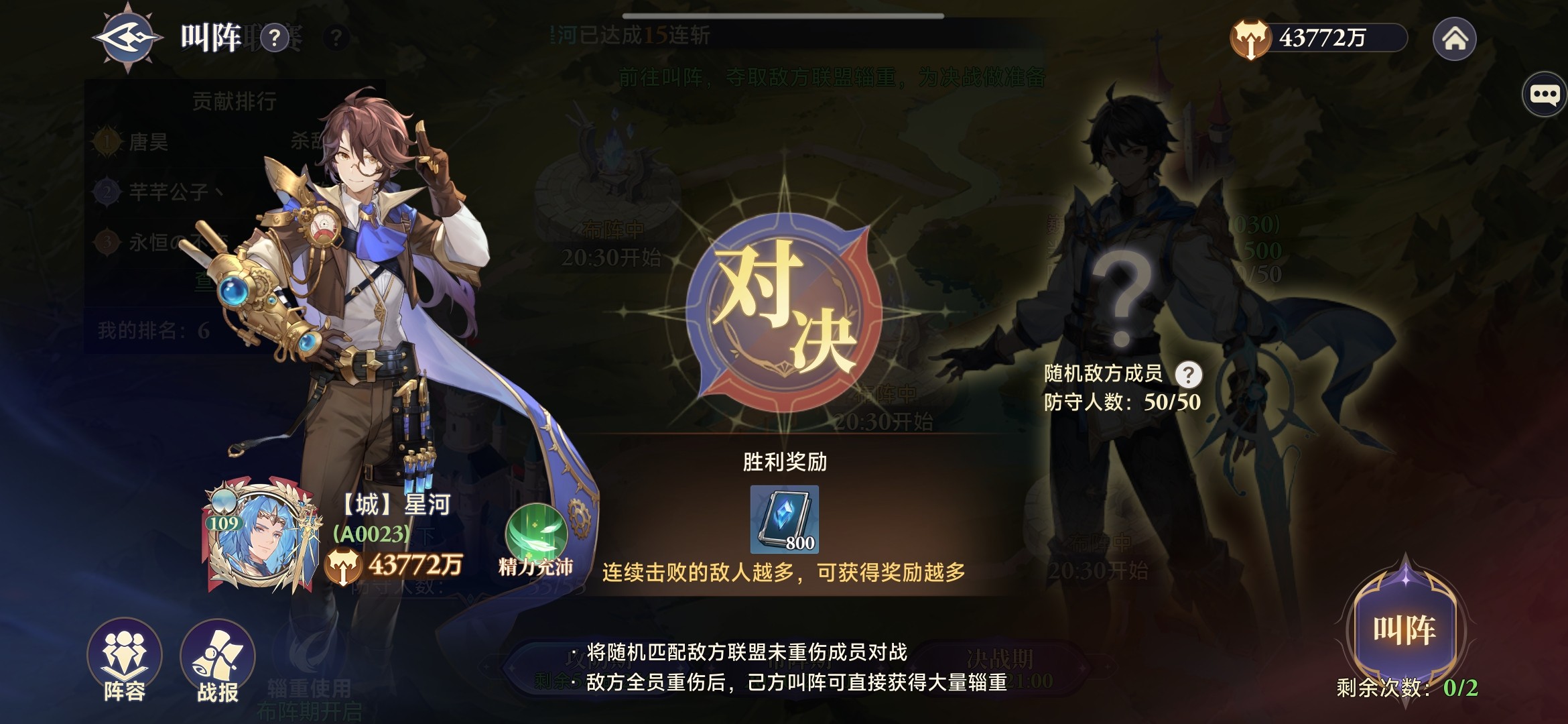 如何取得更高的连斩数,为联盟作出更多贡献,合理的阵容搭配至关重要。此玩法采取的是三队战斗方式,三局两胜即可,所以集中资源打造两队,形成优势,面对高战玩家可以通过田忌赛马获得胜利。