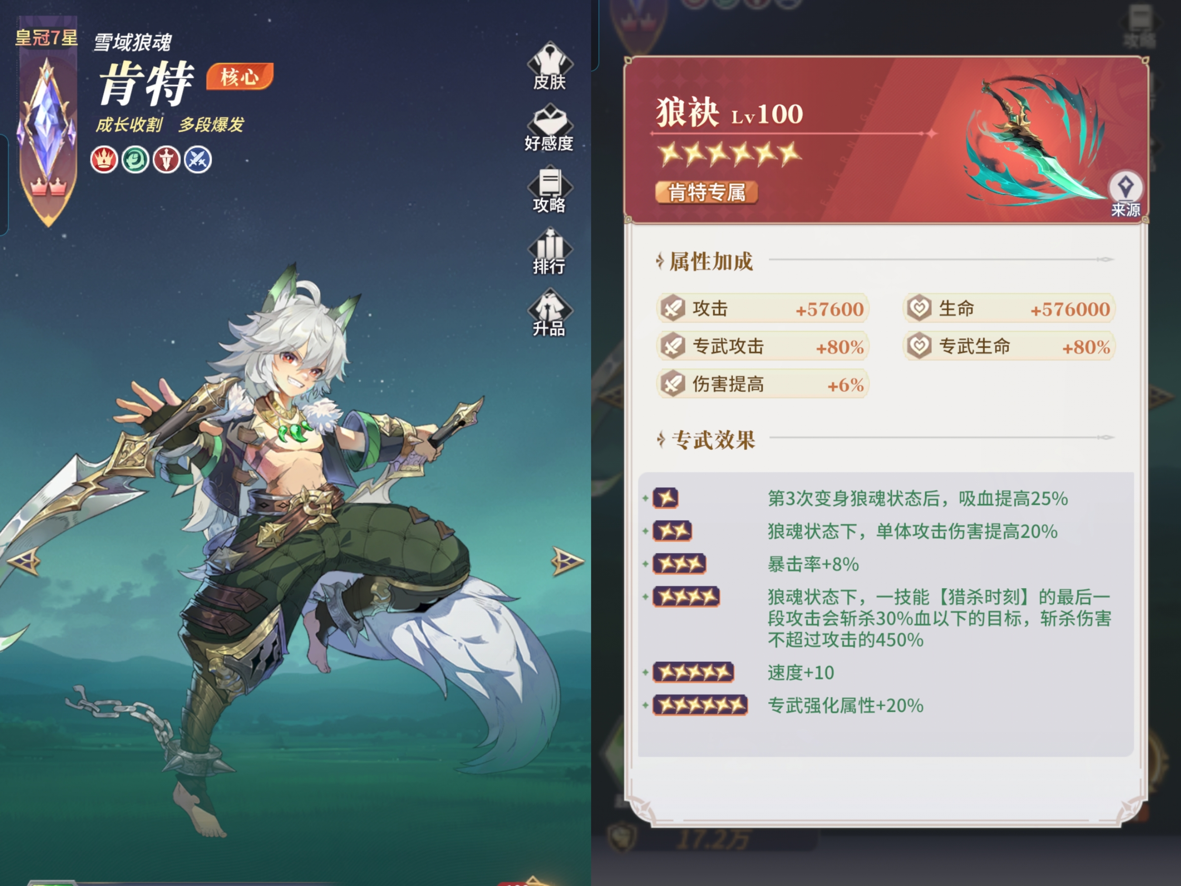 ②第二点优点:强度高!对于氪佬发育好的冠级狼人+4星专武!3-4回合伤害起来以后,一刀一个小朋友!越战怪!
