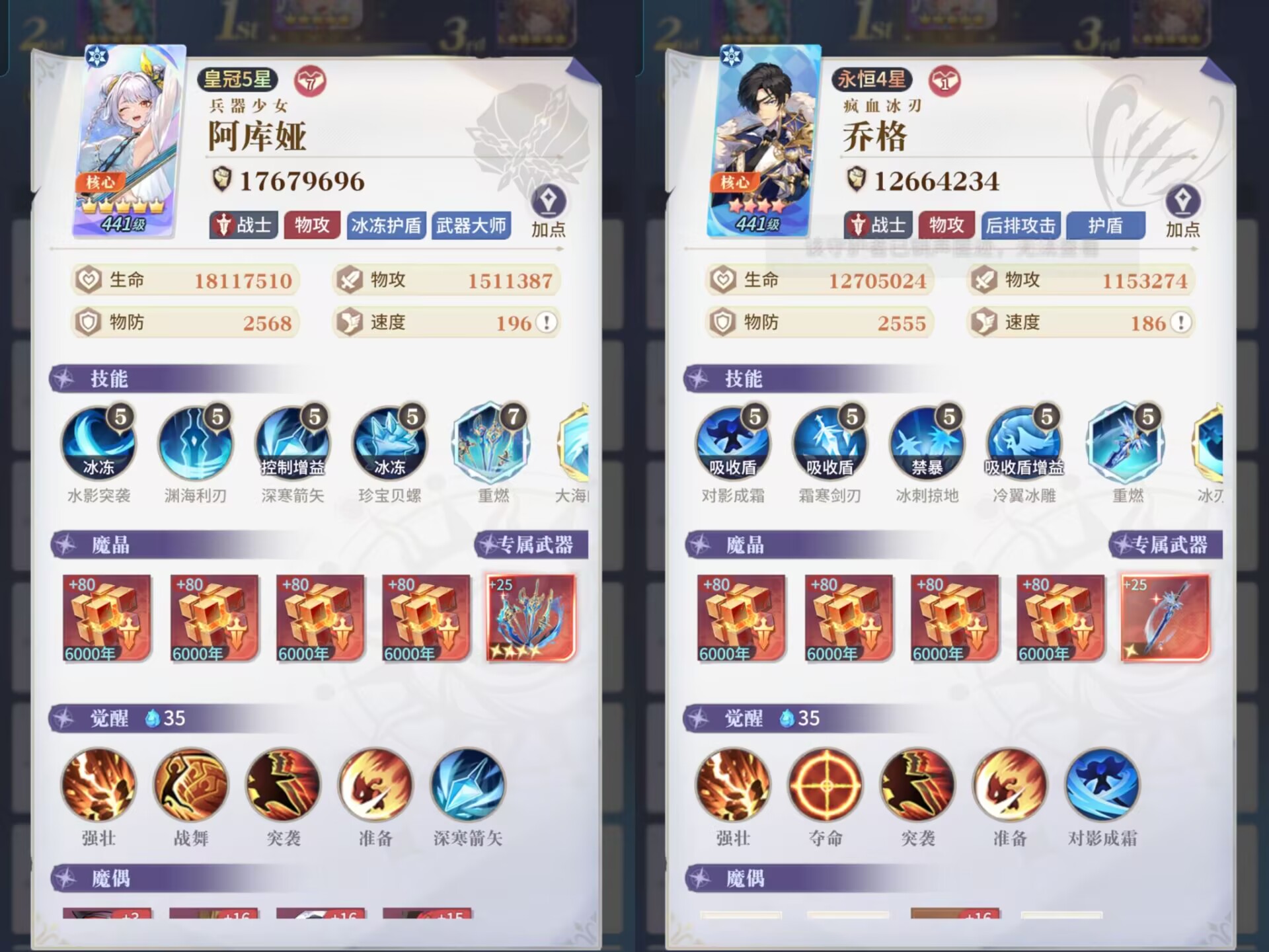 三:【狮子推荐】冰冻乔格+阿库娅阵容。推荐指数:4星⭐⭐⭐⭐(仅限喜欢阿库娅的氪佬玩家可以入坑这套阵容)