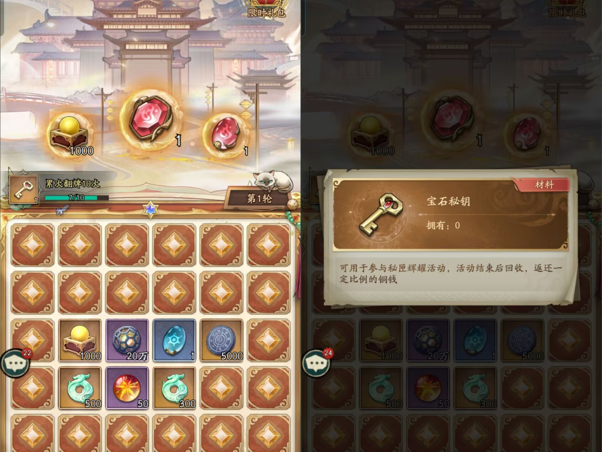 然后我们通过【宝石秘钥】去翻牌获得资源道具。