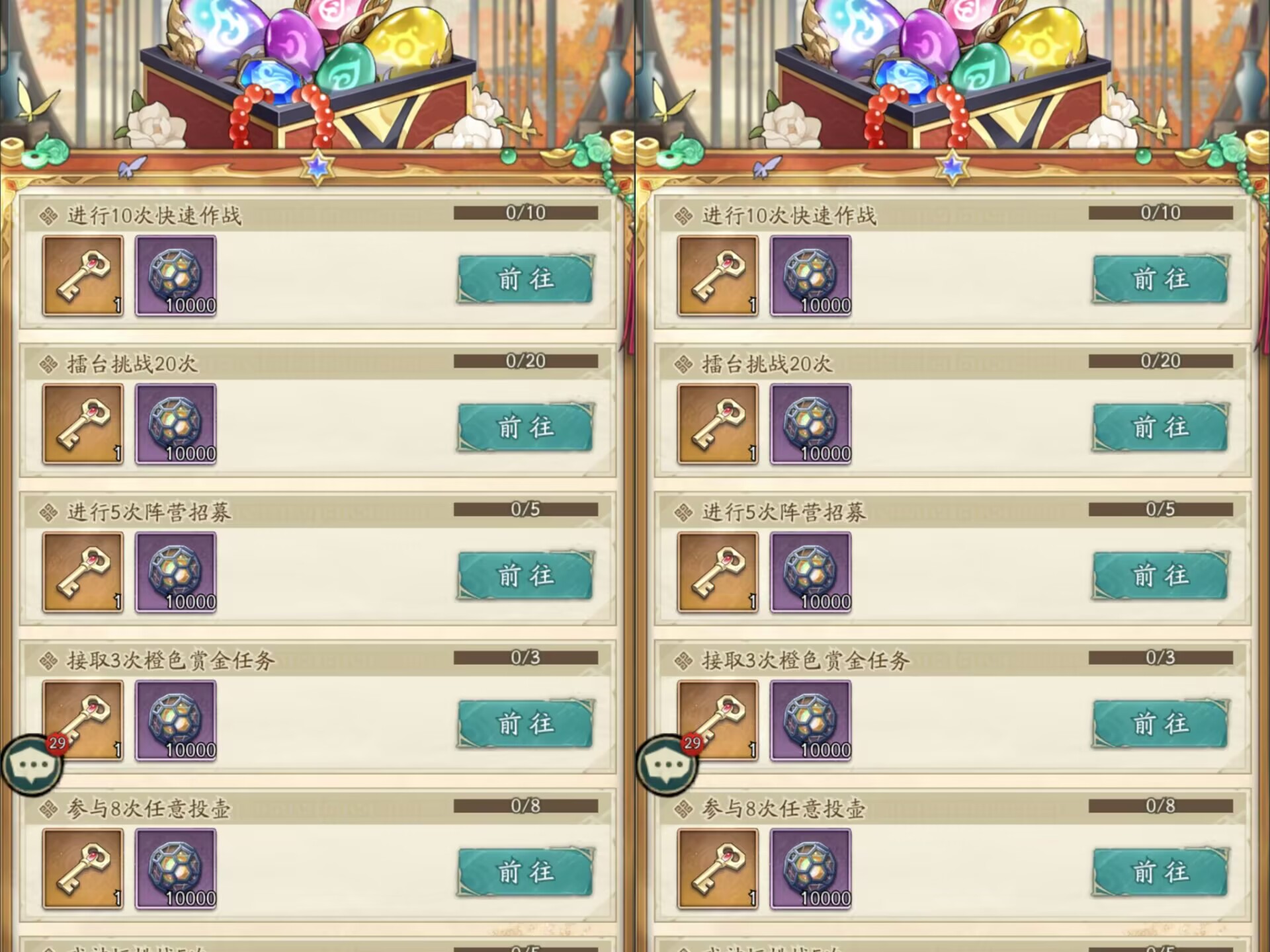 二:【任务达标】记得完成。全部完成可以获得8把钥匙!平民玩家也别忘了去完成!万一运气好翻到大奖,那也是赚的