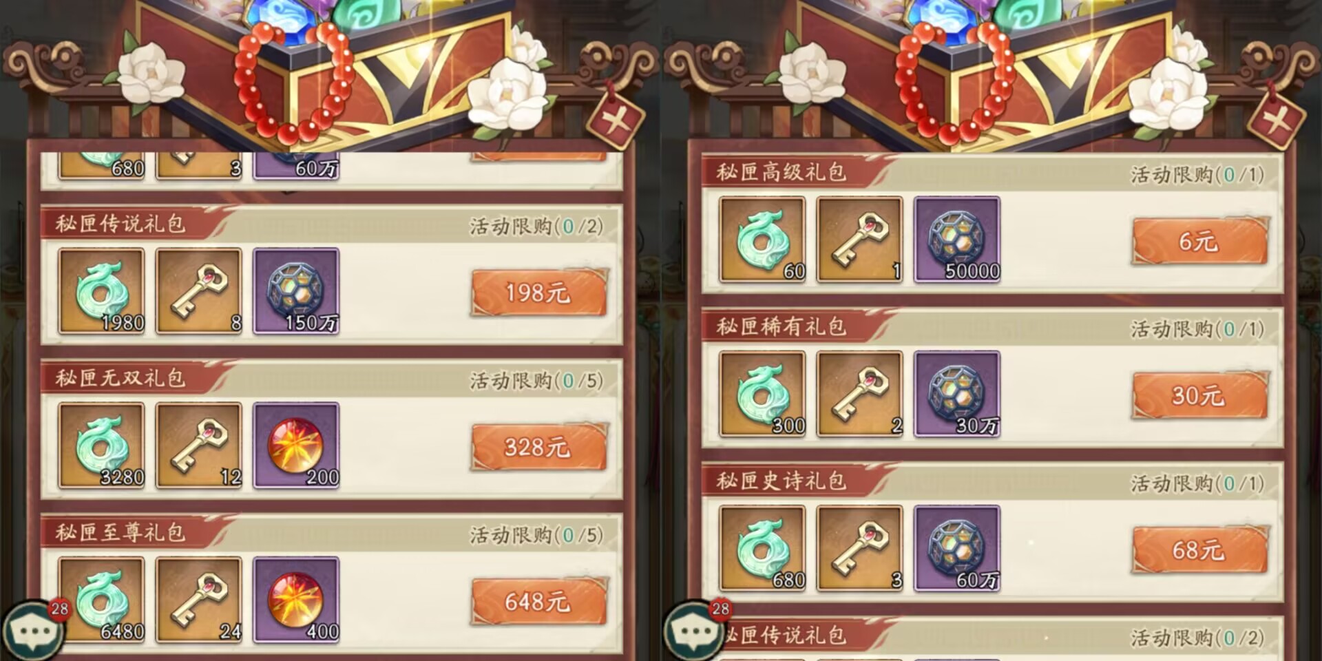④剩下想继续获取钥匙就只能通过够买氪金礼包。