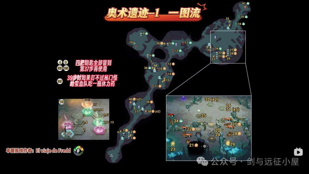 【启程】奇境探险攻略(奥术遗迹-1) 一图流剑与远征 - 攻略星发布于 04-11关注1. 奇景图攻略,感谢越南服半月大佬的搬运。原作者:Elviaje de Fredd2. 蛮血&绿裔阵容推荐(如图2),只要阵容里有三个以上蛮血英雄即可判断为蛮血队(绿裔队同理),因此没必要非得上五个同阵营英雄,根据自身卡池选择最强最合适的英雄上场就好。蛮血队里的狼人没有三星可以换呼金、黑法;绿裔队里的替补卡更多了,五月、老头、雪女等等都可以上场。 转载自:剑与远征小屋