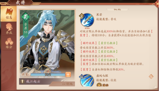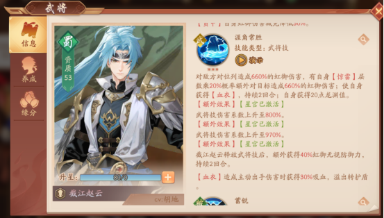 赵云的技能都是对位列,可以拿来切后排的,但这游戏有前后排这种说法吗哈哈哈。其他就是基础的无视防御力和吸血。星宫伤害提升到970%。