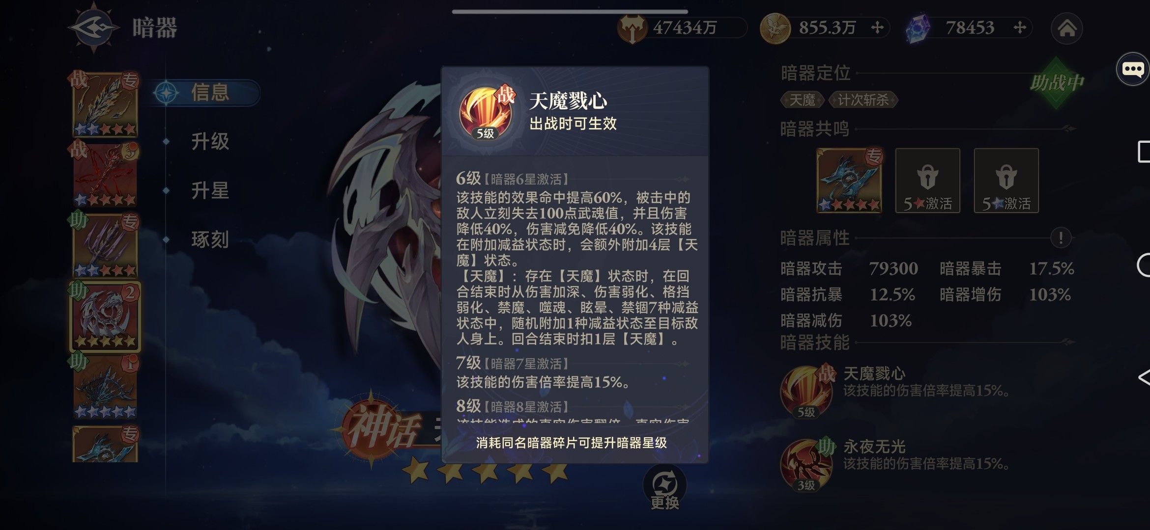 ③暗器12星,【天魔】施加范围为敌方攻击最高所在列。