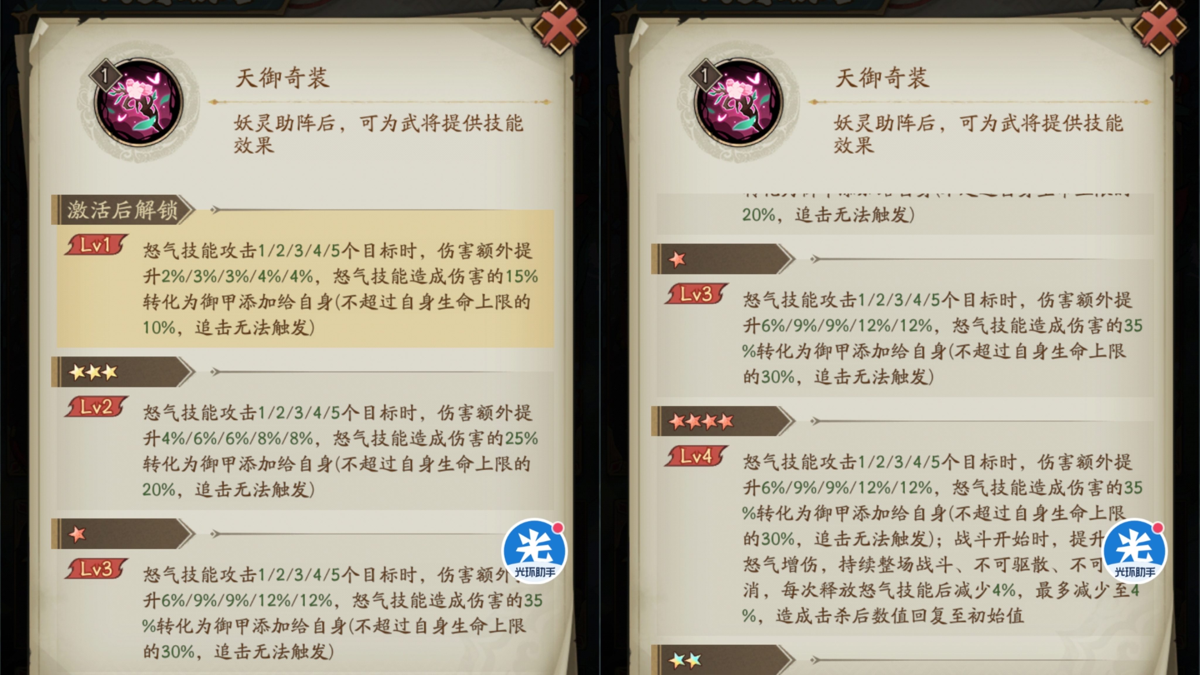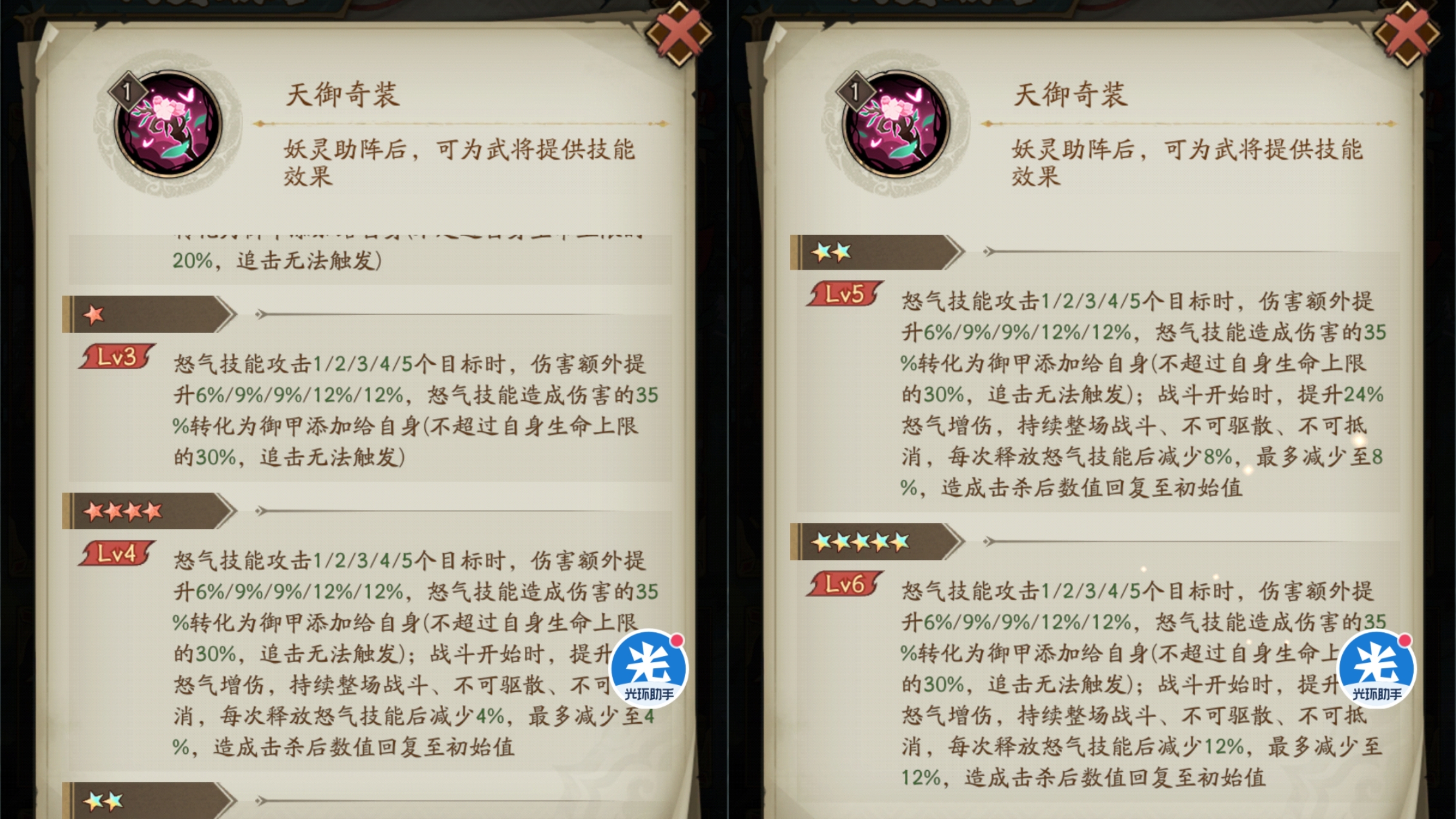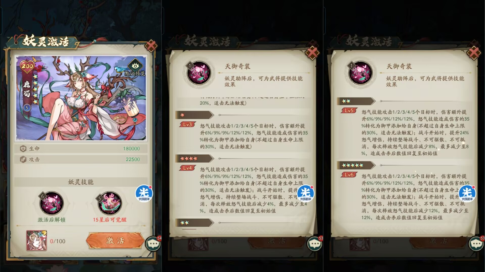 ③当【鹿灵】到达8星可以产生质变解锁:怒气增伤效果。难级情况战斗开始最大可以提供36%的怒气增伤,然后每回合削弱12%。这个效果不可被驱散和抵消。