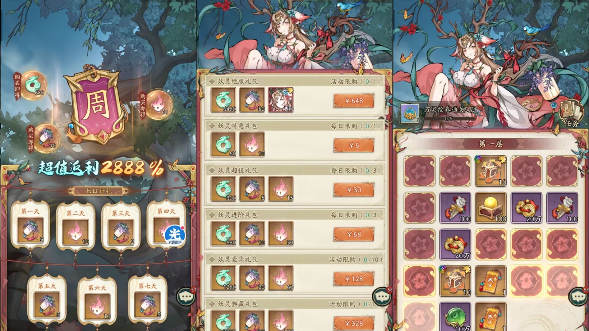 剩下的基础活动玩法【结缘卡】【周卡】【万灵绘卷】都是妖灵活动的老玩法了,也不用狮子过多解析了!