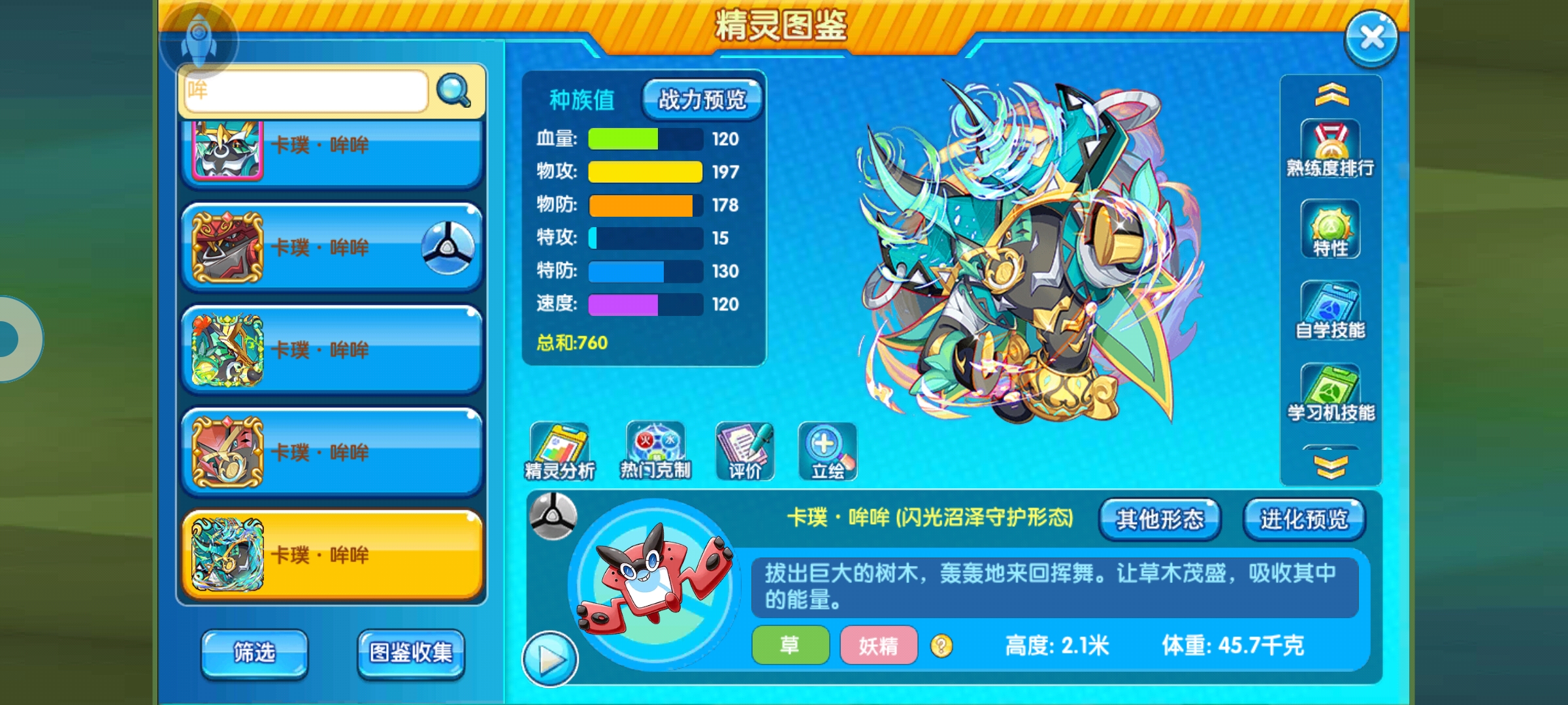 共鸣目前选择了普通沼泽守护形态的草牛。