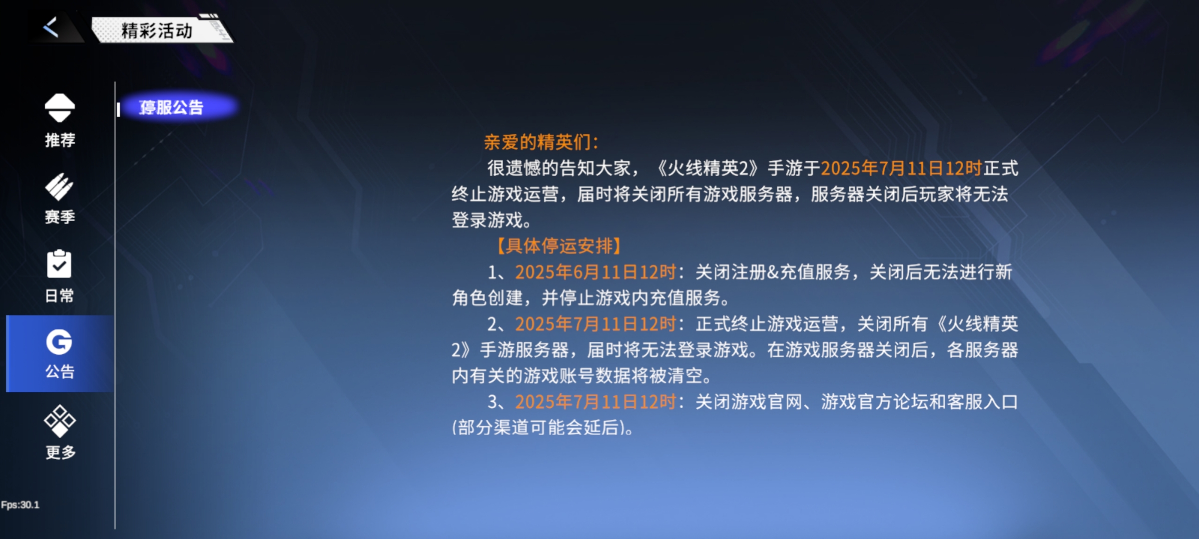 火线精英停服了