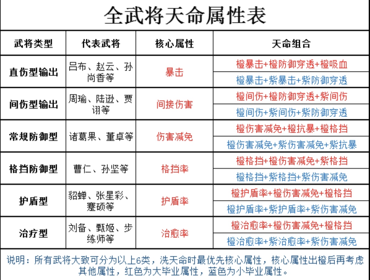 三、天命属性的选择推荐为方便玩家查阅特此整理全武将天命属性表!