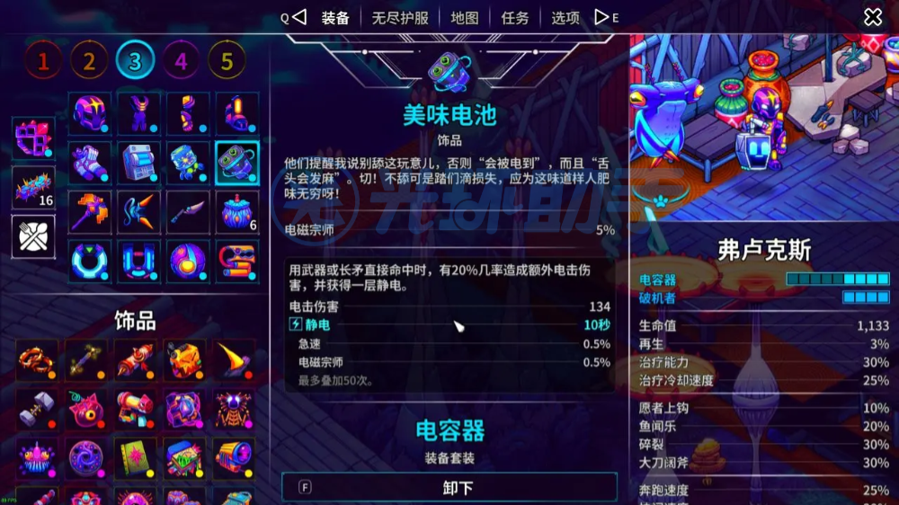 选择以蓄电为核心机制的法杖与饰品,搭配蓄电充能快速连招,打谁谁麻。