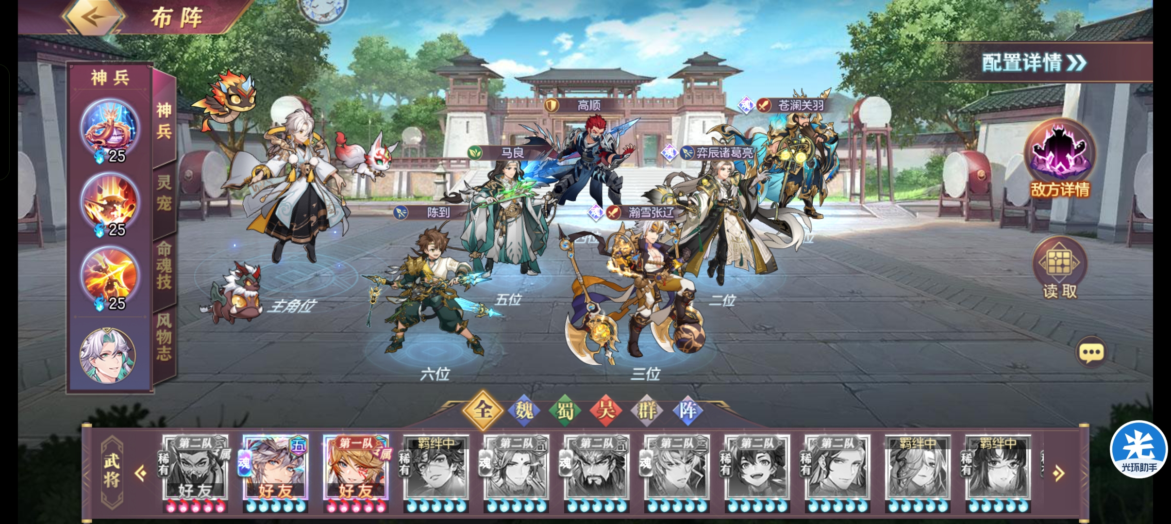 阵容:魂关羽-魂诸葛-魂张辽-命高顺-马良-陈到