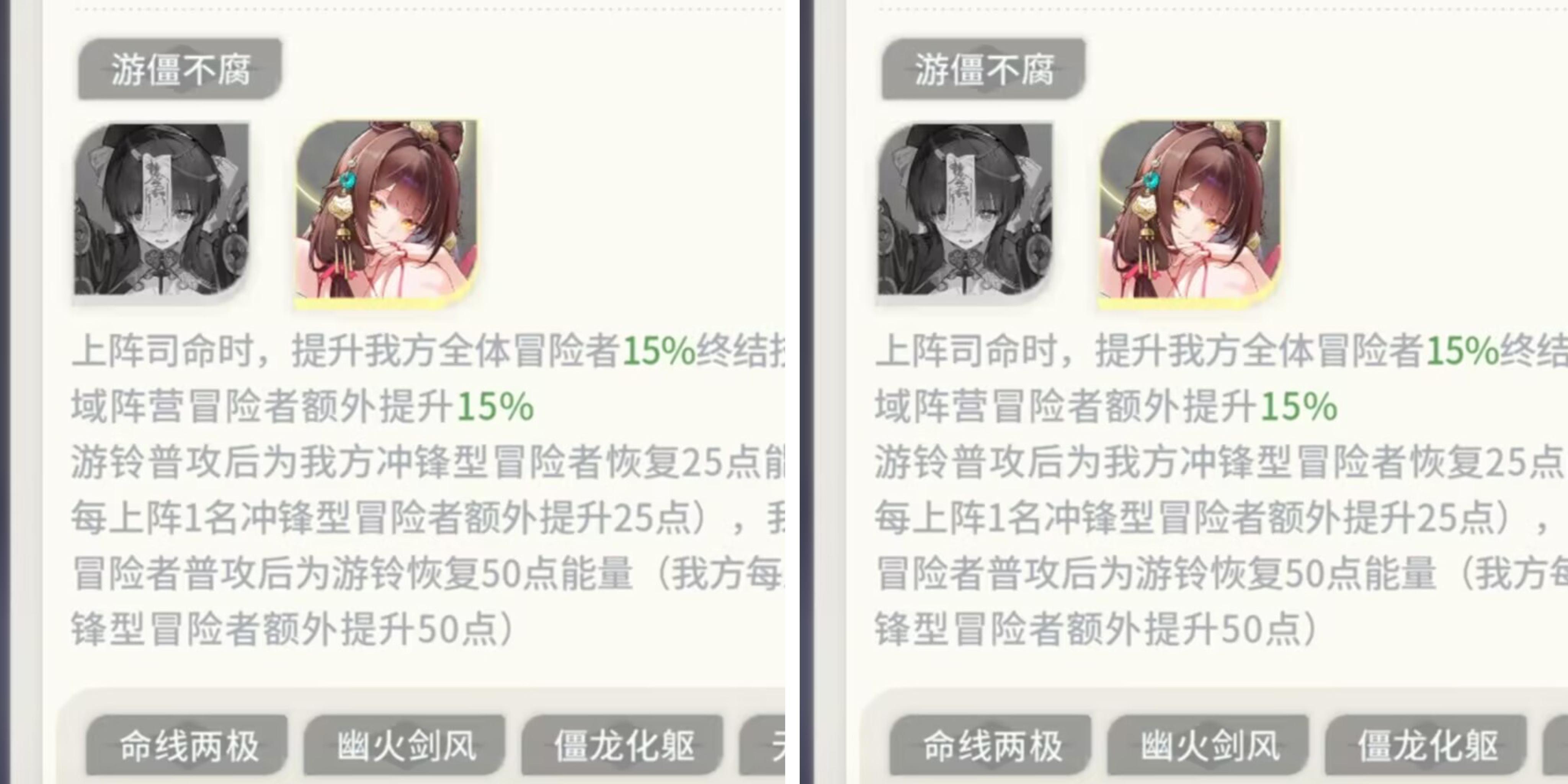 同时只要游铃身上有灵符,无论1层还是多少层,就可以给自身提升50%异常抗性和20%的控制抗性,给队友获得25%异常抗性。