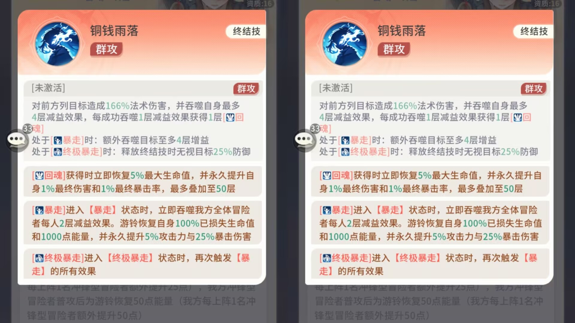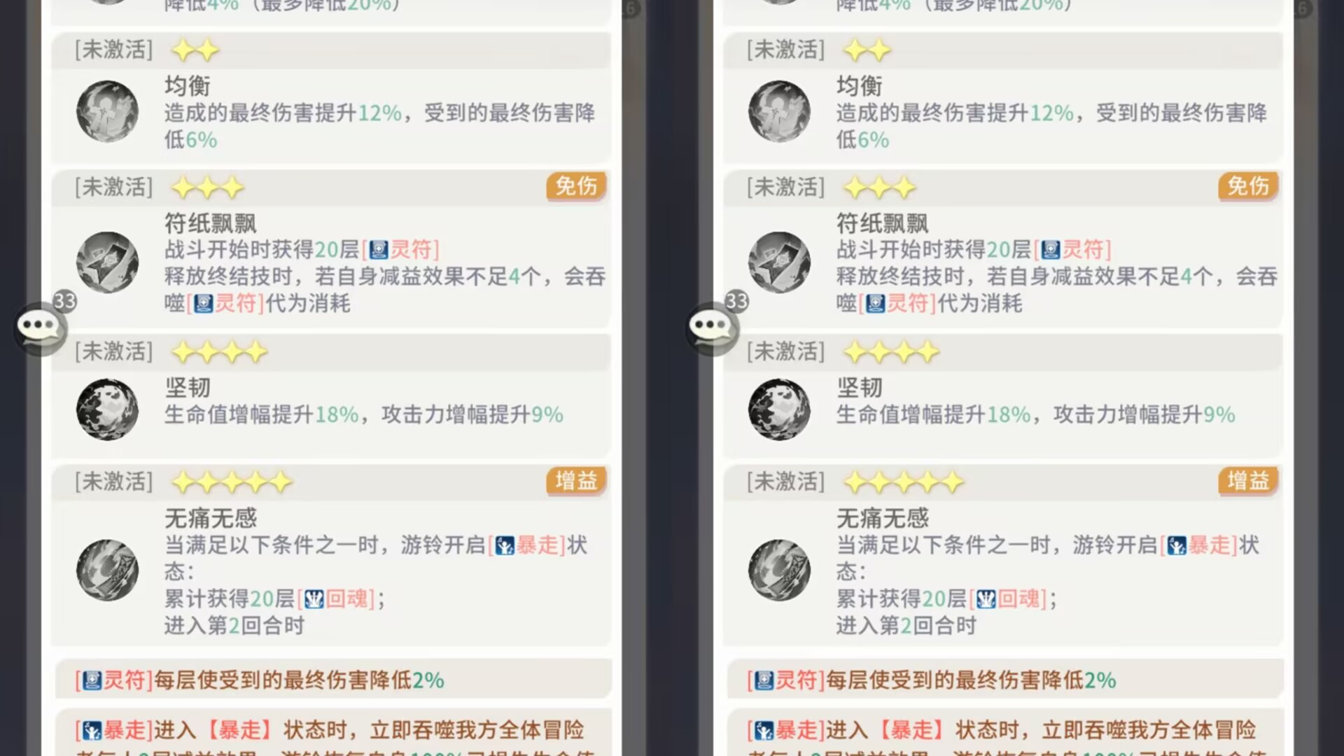 游铃自身也有强力的治疗机制和减伤,也可以优先考虑放前排,加强自身也有不俗的伤害表现,特别是暴走状态下输出大幅度加强,加强了队伍的输出能力。