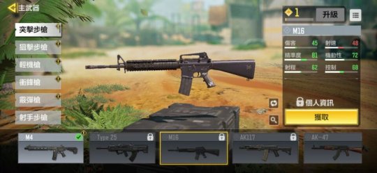 使命召唤手游 突击步枪M16基础数据及打法推荐lzt926(╯▽╰)发布于 2020-12-15关注M16属于爆发型三连射突击步枪,中距离三发全中必死无疑。它中距射击是在突击步枪中数一数二的,一枪49伤害,只需要打中三枪就能带走一人。射速:48单发伤害(无衰减):45精准度:81机动性:72射程:62控制:68M16盲射弹道较散,并且拥有随机性,准确度不出众,不容易打中敌人,是全突击步枪最差的盲射散布。这把枪开枪时枪口上跳厉害,需要一定的控制技巧,尤其是近距离射击时。由于想要扣一次扳机就击杀敌人需要3发全中,因此在射击横向移动目标时,一般需要连续扣动扳机2次以上,中近距离作战如果有失误比较容易被反杀。