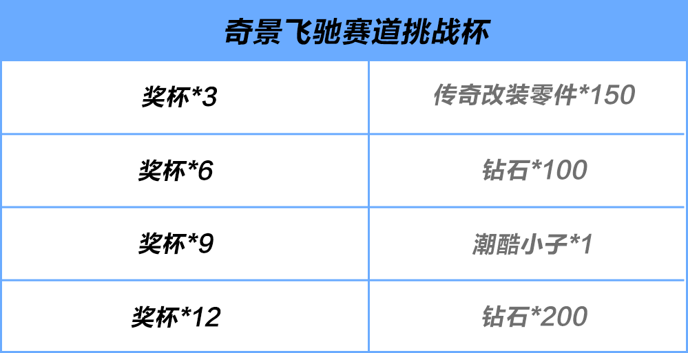 ▼奇景飞驰赛道挑战杯奖励详情如下▼![]()