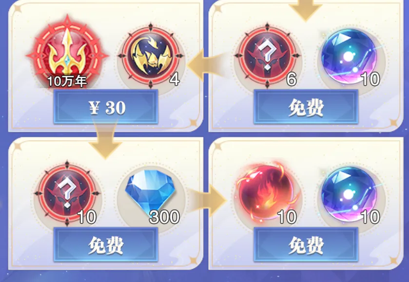 然后便是30元部分了,这部分可以获得一个10万年魂环和4个凶兽魂环,外加一些其它常规资源,30元/4个凶兽嘛要比刚刚6元/凶兽稍微贵一点,不过原则还是那个原则,大家如果就是急缺这个魂环的话,则真就物以稀为贵,请结合自身的资源和能力综合考量。