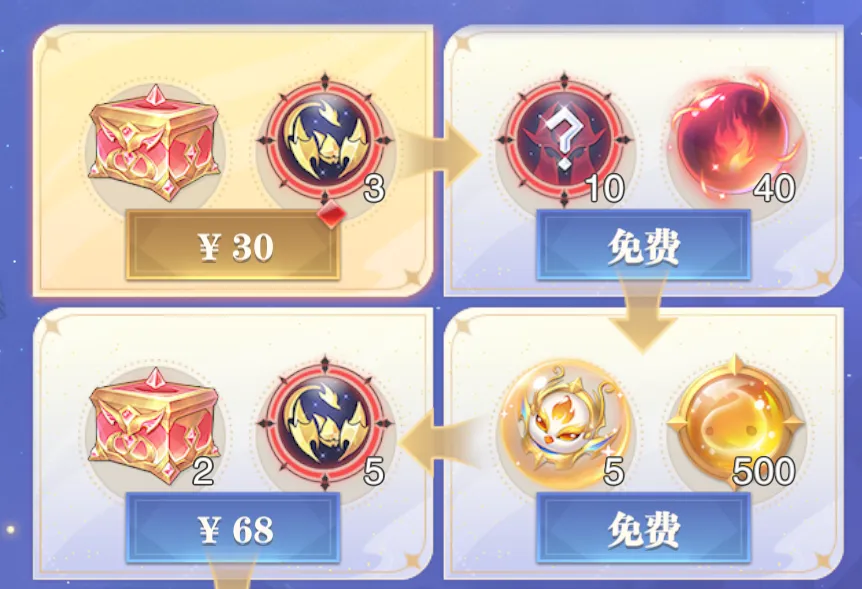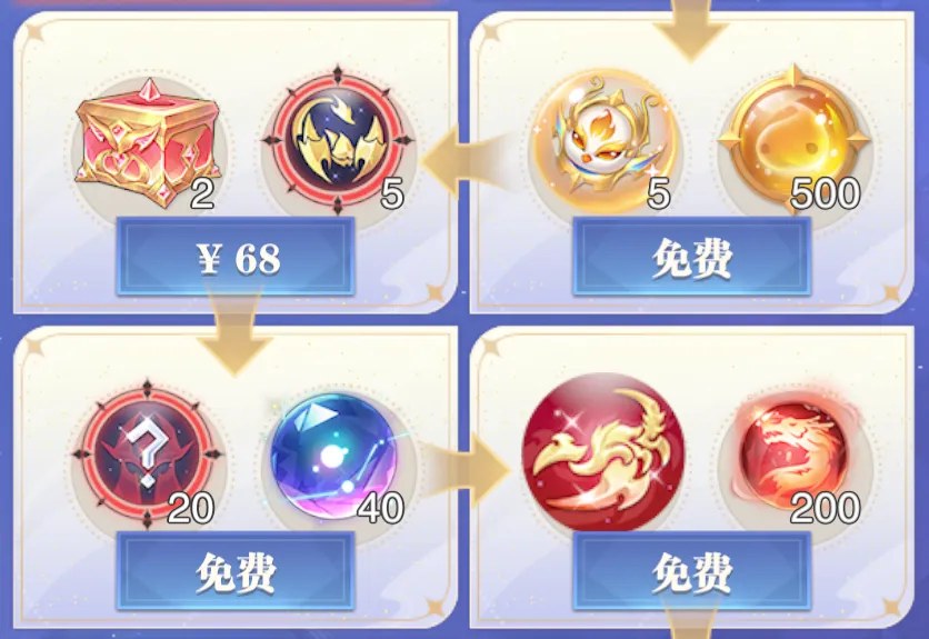 然后是68元礼包部分,可以拿5个凶兽魂环自选和2个神魂/神骨自选,这部分的性价比吧说实话其实也就那样,主要是神魂/神骨这两项资源的养成度也跟大家自身的账号情况息息相关,这个养成系统已经上线的时间也很久很久了,不少玩家都养了个七七八八,但针对前中期的玩家而言这东西又是一个超级大的深坑,其3个外围的魂髓在增伤上的表现的确不错,但成本也不算低,大家还请量力而行。
