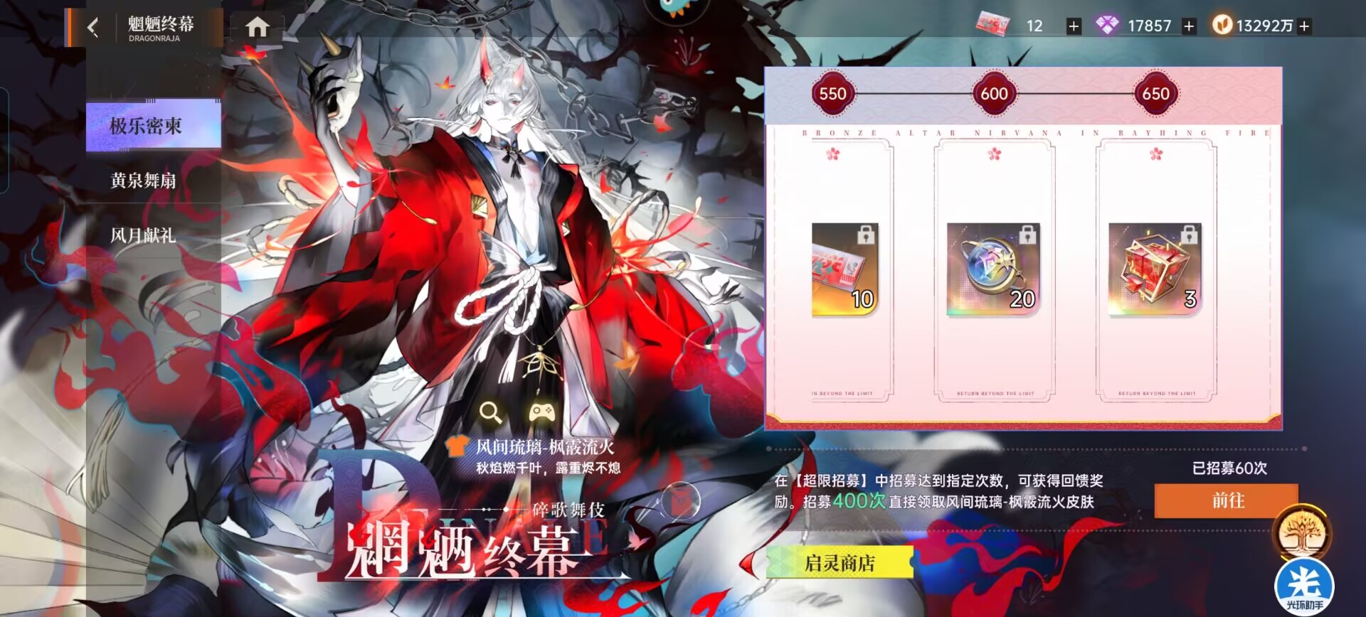 1:【魍魉终幕】活动核心总结。①该活动核心就是获得:风间琉璃新皮肤和超限石头,需要在【超限卡池】中抽取400次风间琉璃可以获得皮肤。