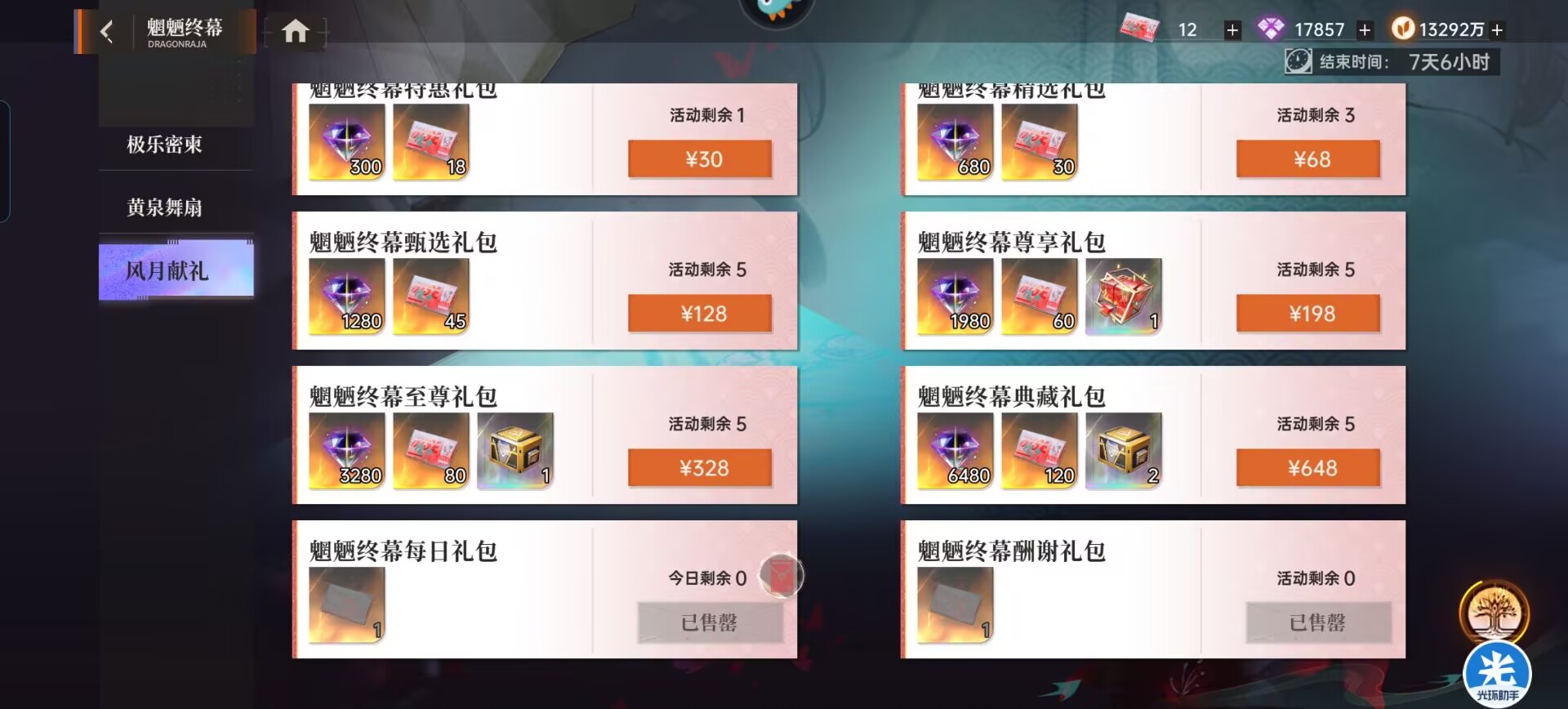 5:【风月献礼】购买建议。这里面的钻石礼包必买!一共可以买20张!就算不抽风间琉璃也可以把超限卷囤着。