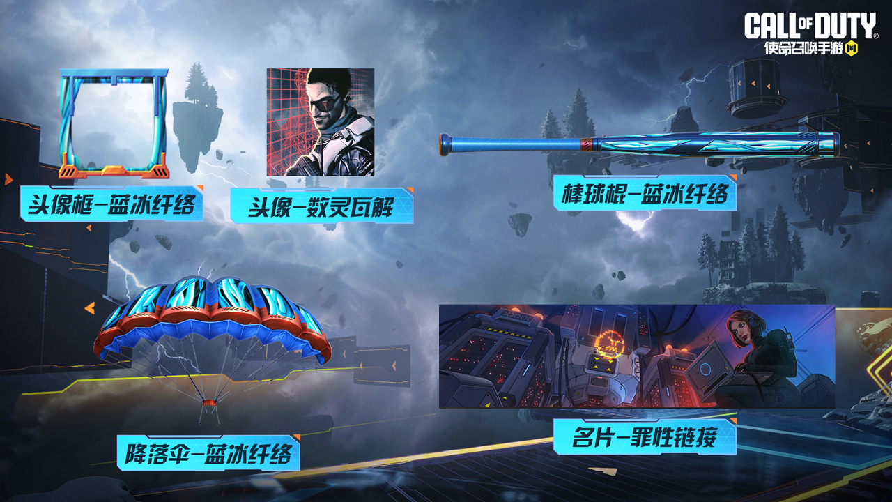 解锁进阶版使命手册后,战士们还可以获得头像框-蓝冰纤络、头像-数灵瓦解、降落伞-蓝冰纤络、棒球棍-蓝冰纤络和名片-罪性链接。![]()