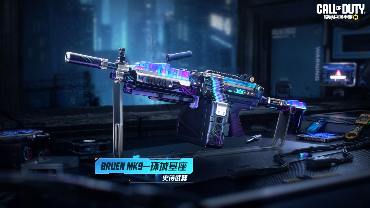 Bruen MK9-环城基座枪管闪烁着霓虹般的紫色光芒,枪托的设计现代而流畅,散发出未来的冷峻美感。![]()