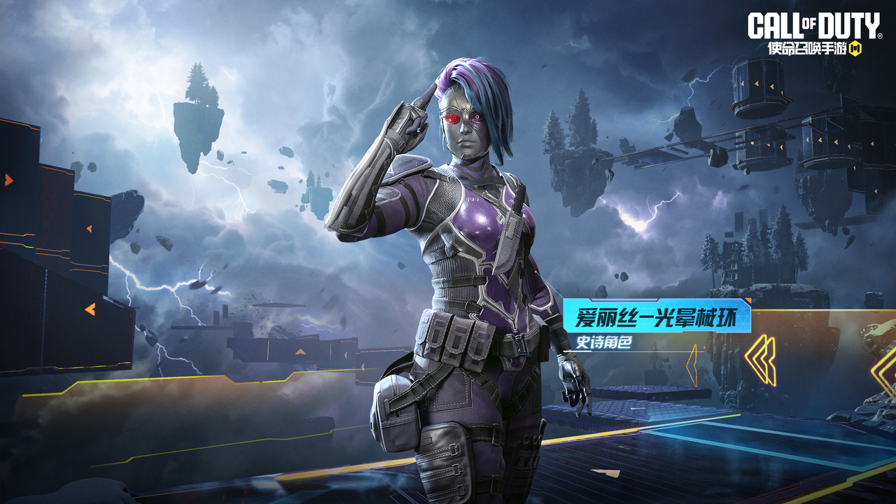 爱丽丝-光晕械环的蓝紫色发色与红色眼眸形成鲜明对比。机械装甲紧贴身形,彰显出超凡的科技魅力。![]()
